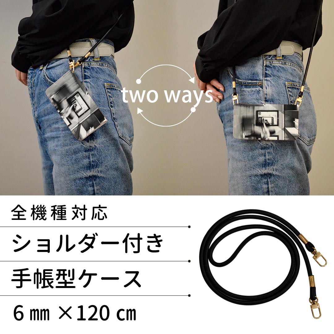 Xperia Ace II SO-41B エクスペリア ストラップ付き so41b ケース ショルダー スマホ 落下防止 手帳型 マグネット式 ピタッと閉まる スマホカバー 肩掛け 斜めかけ 023846 電車 改札口 モノクロ