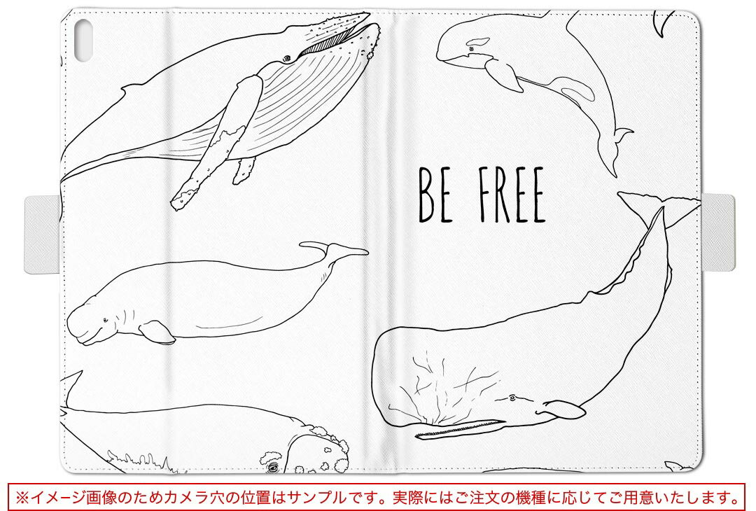 KYT32 Qua tab QZ8 用 タブレット ケース quatabqz8 Mサイズ 手帳型 タブレットケース カバー レザー フリップ ダイアリー 二つ折り 革 015861 魚 海 くじら