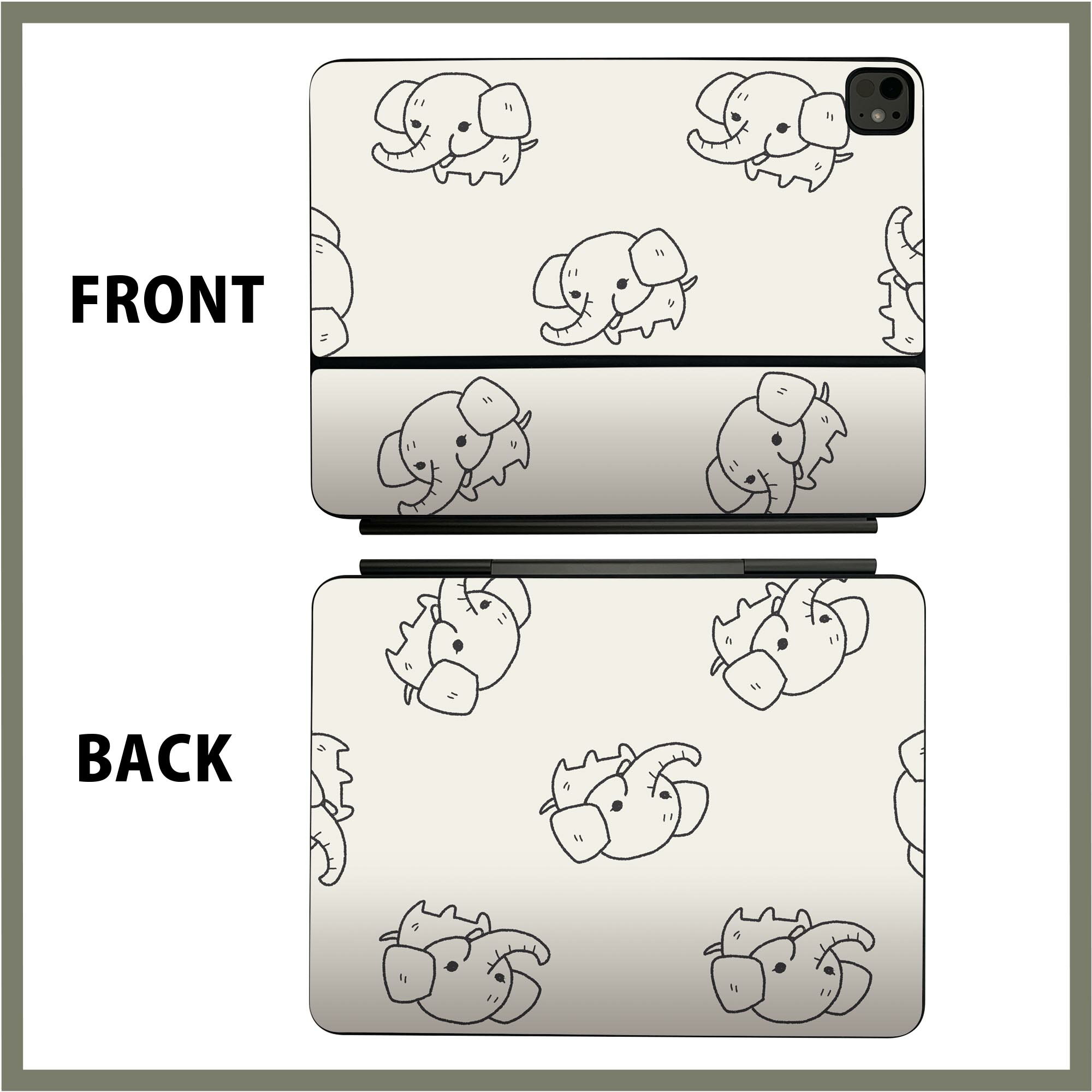 マジックキーボード 用 スキンシール 11インチ 13インチ iPad Pro11(M4) iPad Pro13(M4)用 2024年発売 第5世代 Magic Keyboard 対応 前面 背面 保護シール 人気 ぞう 動物 白 黒 010702
