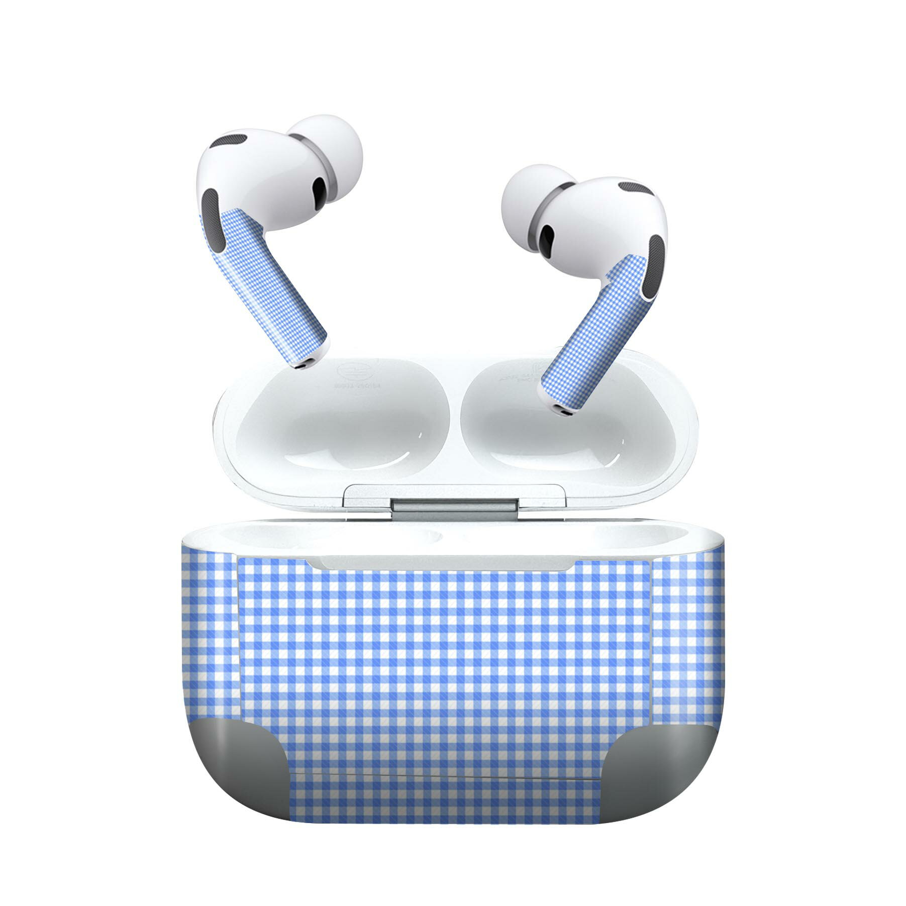 Air Pods Pro3 専用 デザインスキンシール エアポッド AirPods Pro 第3世代 対応 2枚入り イヤホン カバー デコレーション アクセサリー デコシール 高品質再剥離性シート 008091 青 ブルー チェック 模様