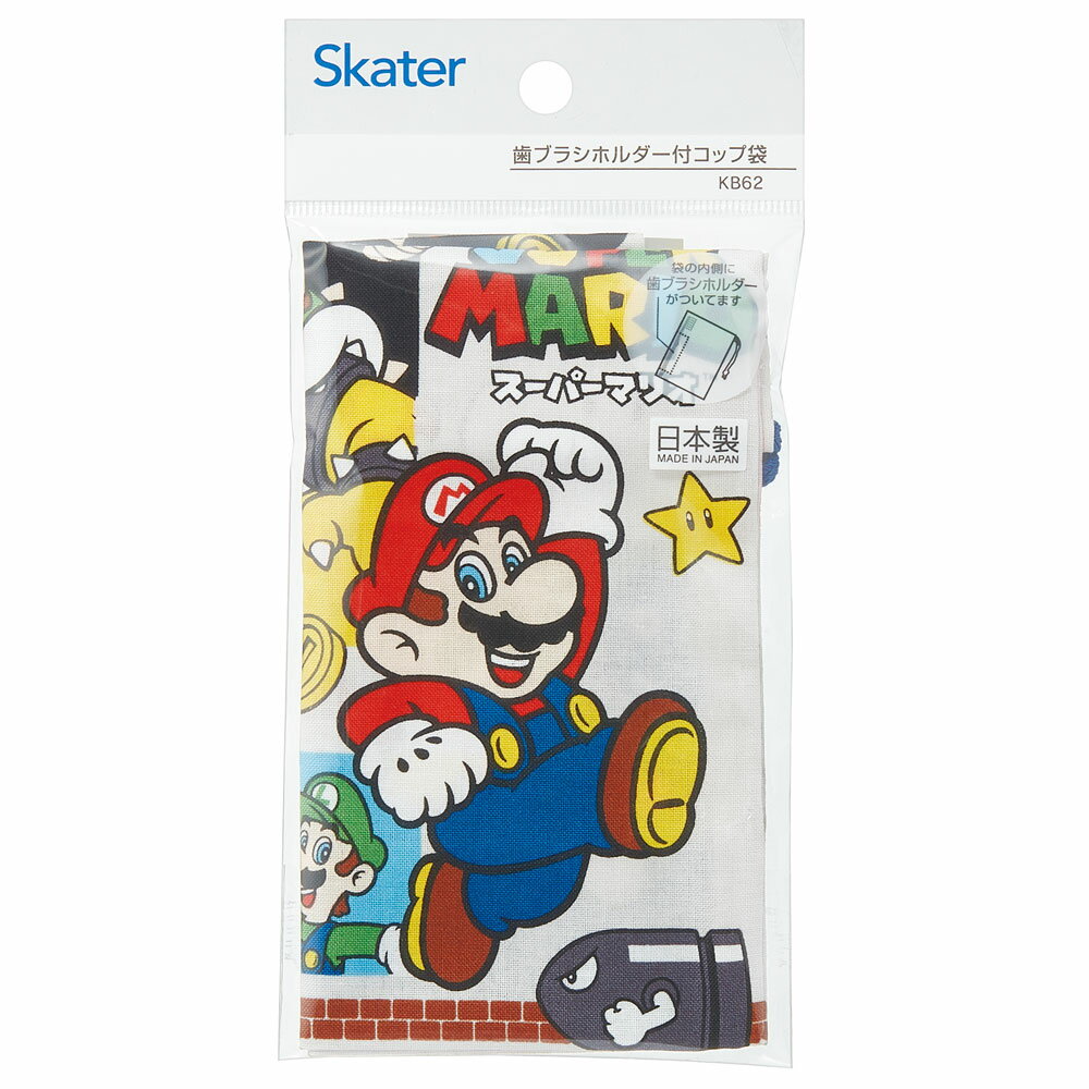 [〜11月18日迄 P20倍]コップ袋 保育園 歯ブラシホルダー付 巾着袋 小 コップ入れ 巾着 コップ スケーター KB62 23年 スーパーマリオ マリオ MARIO 男の子 男子 男児【コップ巾着 マチ付き 幼稚園 小学校 きんちゃく袋 ポーチ】