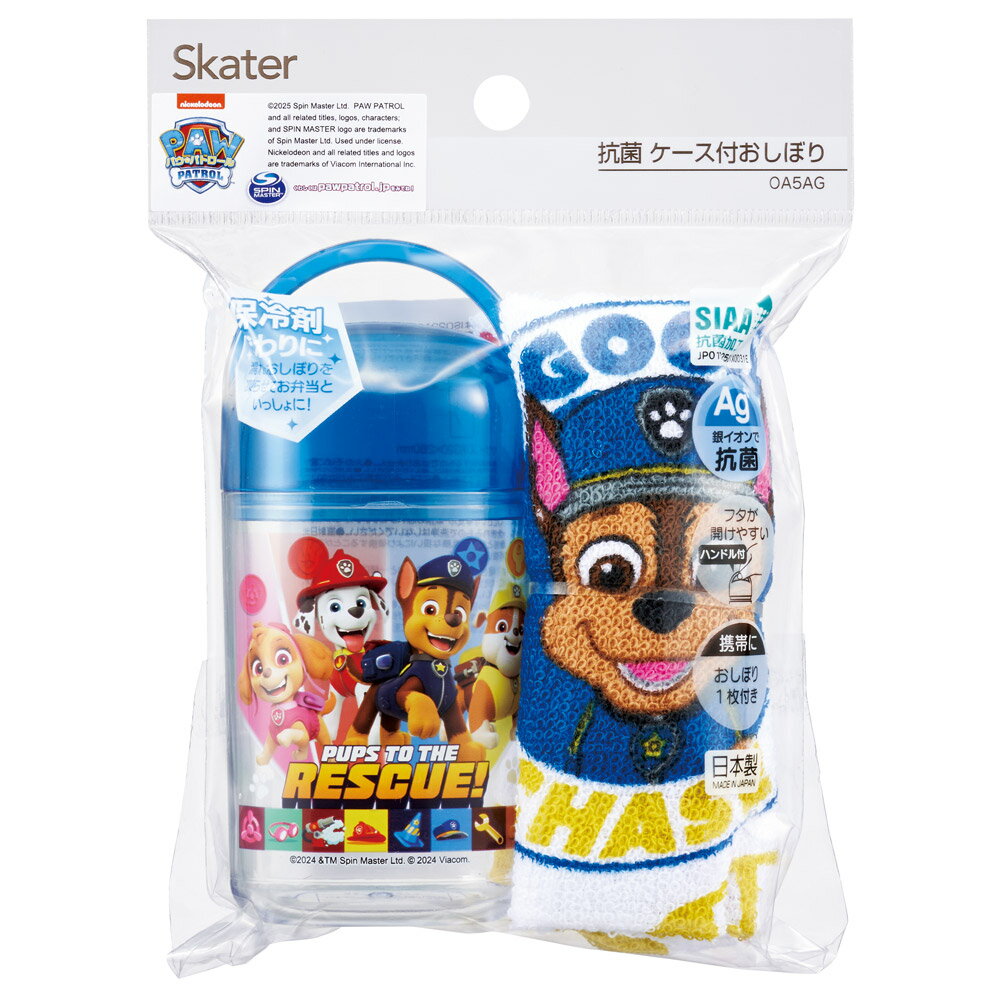 おしぼりタオル おしぼりケース おしぼりセット おしぼり 子供 おしぼり入れ skater スケーター OA5AG パウ パトロール 25年 パウパト 男の子 男子 男児【手拭きタオル ハンカチタオル ハンドタオル かわいい 抗菌 お手拭き】
