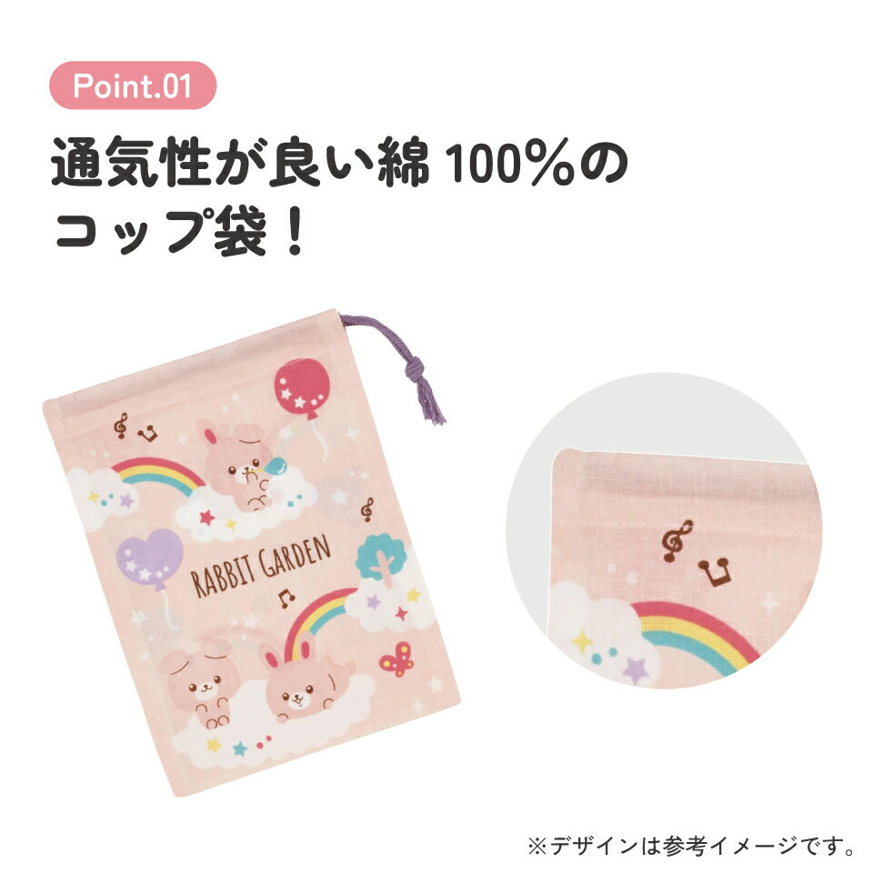 # コップ袋 巾着袋 コップ入れ 保育園 幼稚園 小学校 子ども 給食袋 キャラクター skater スケーター KB63 ラビットガーデン うさぎ 女の子【子供 コップ 巾着 袋 きんちゃく 小 入園 入学 小学生】