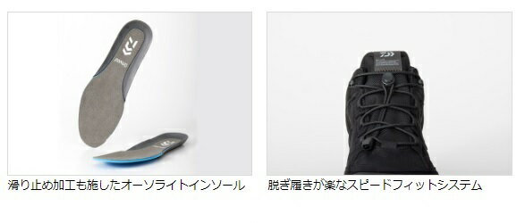 ゴアテックスブーティーを採用した透湿防水シューズ新登場!優れた透湿性・防水性を実現。ヴィブラム社と共同開発したオリジナルソール(メガグリップ仕様)を搭載。水辺のシチュエーションで驚きのグリップ力を発揮。オーソライトインソールを採用。歩行時のパフォーマンス性アップ。スピードフィットシステム搭載。紐結びが不要。新型EVAミッドソールを採用し、軽量化を追求。足形を見直し、履き心地を追求した新型オリジナルラスト(足形)。防水性が高いハイカット仕様(DS-3301G)タイプ:ハイカット カラー:ブラック サイズ:26.0cm ※実物と色が違って見える場合があります。あらかじめご了承下さい。
