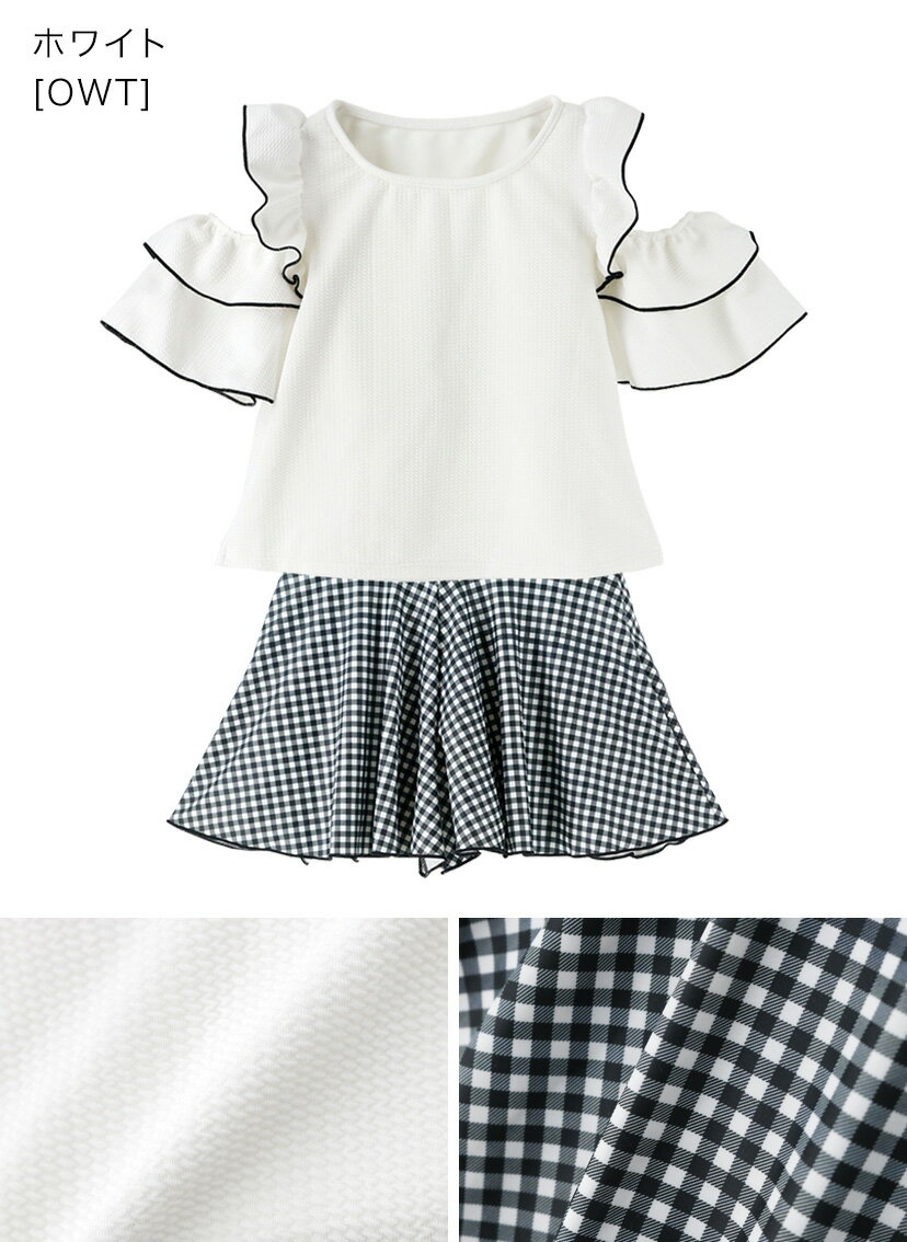 【最強超目玉】ティーンズ ジュニア 水着 女の子 肩あきフリル セパレートスイムウェア キッズ ブラック 黒 白 水色 紫 紺 花柄 チェック柄 子供 小学生 中学生 女子 TAK キャサリンコテージ 超目玉 fuku