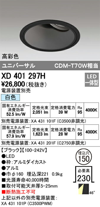 オーデリック ダウンライト 【XD 401 297H】【XD401297H】【メーカー取り寄せ】【純正品】 施主支給