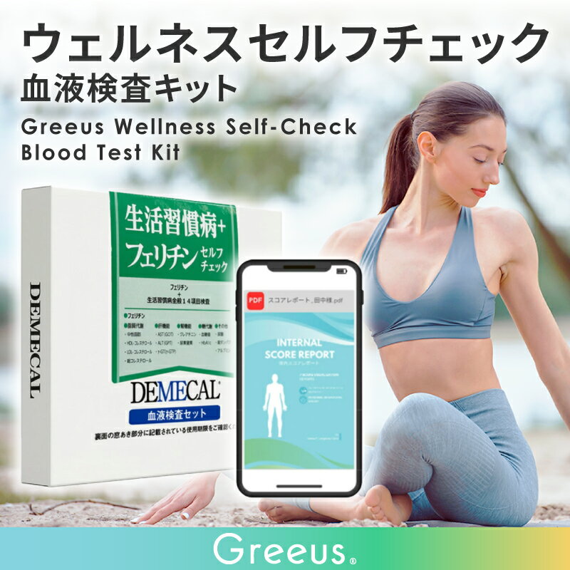 Greeus ウェルネス セルフ チェック 血液検査キット + パーソナルPDFレポート DEMEDICAL 生活習慣病 + フェリチン セルフチェック グリース ウェルネスセルフチェック 生活習慣病全般14項目検査