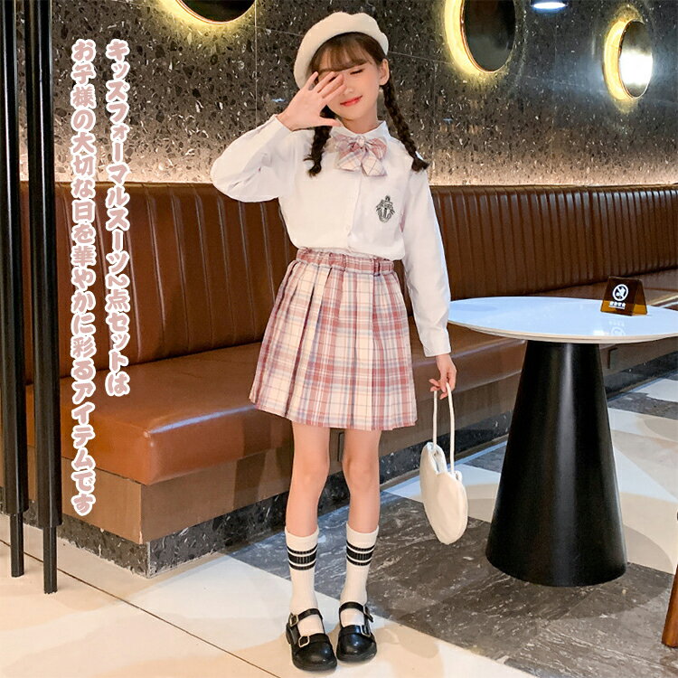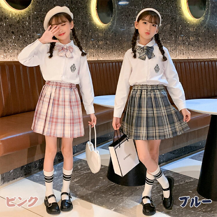 こども服 スクールウェア 学生服 長袖セーラー服 2点セット ミニスカート+長袖シャツ 上下同じ柄 女子用 蝶ネクタイ付き 無地 膝丈 プリーツスカート ギャザー ウエストゴム 春秋 女の子 ガールズ キッズ JK制服 中学校 高校生 チアダンス衣装 学園 発表会衣装 通学 入学式