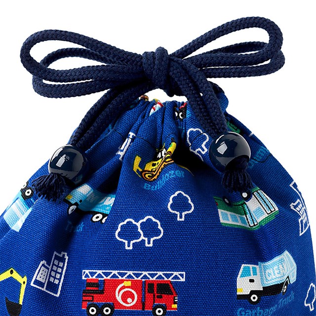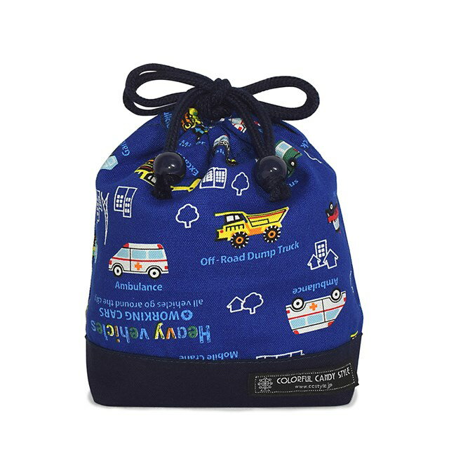 【ゆうパケット配送】 巾着 小 コップ袋 ネームタグ付き アクセル全開はたらく車 ロイヤルブルー 子供用 巾着袋 コップ入れ コップ袋 巾着 コップ入れ 巾着袋 小 保育園 コップ 袋 幼稚園 入園準備 小学校