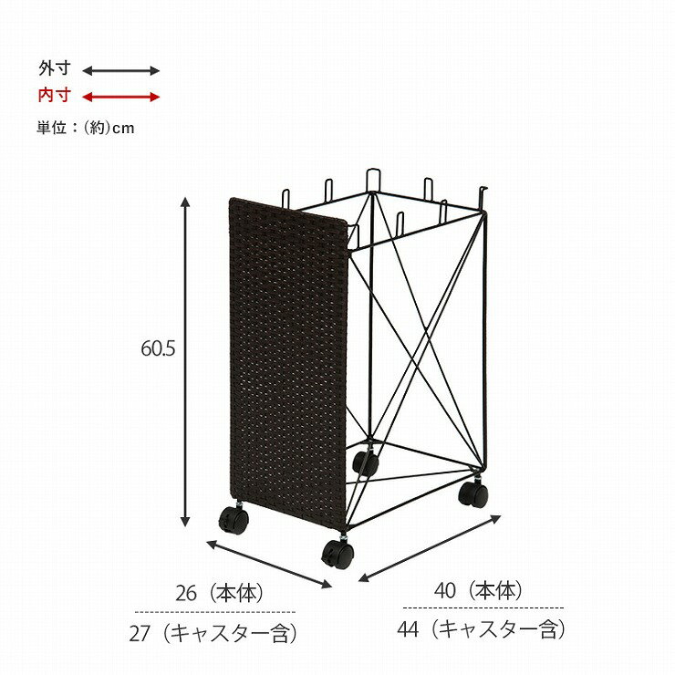 【ブラックフライデー 期間限定!特別クーポン配布中!】分別ごみ袋ラック RUD-2424 (約)幅26×奥行40×高さ60.5cm ゴミ箱 分別 防水 キャスター付き 隠す コンパクト インテリア お洒落 黒 茶色 シンプル モダン クラフト 隙間 収納 キッチン 料理 便利