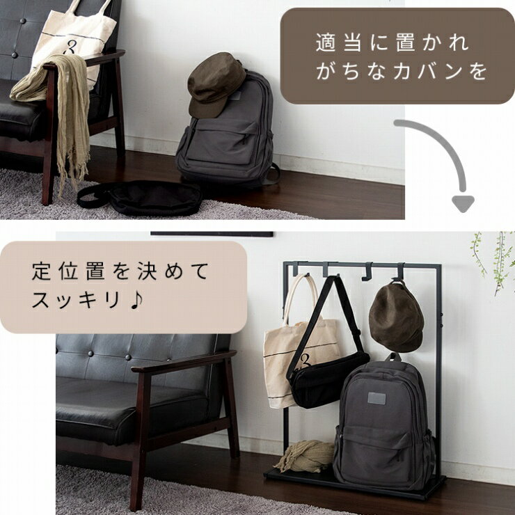 シンプルバッグハンガー Tebore テボーレ BHG-620 幅60cm 奥行き20cm 高さ80cm 下棚付き フック付属 カバン掛け ランドセルラック 帽子ラック 小物置き 玄関収納 エントランスチェスト リビング ダイニング キッチン ラック 棚 省スペース スリム コンパクト おしゃれ 北欧