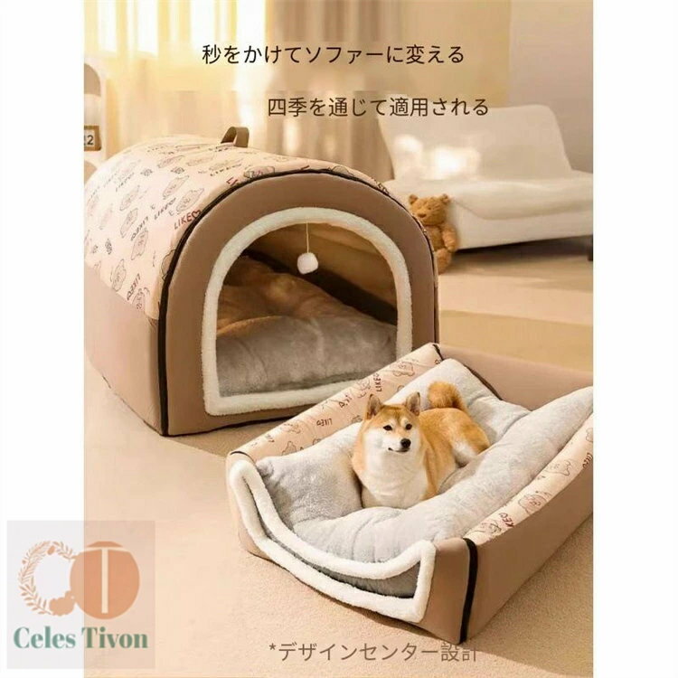 ※寸法は多少の誤差がある場合がございます。 表地:合成繊維+フランネル 中材:PP綿 裏面:オックスフォード布とすべり止め付け ドーム型の中にマットを置いてハウス型での使用と、天井を潰してその上にマットを置くベッド型の2通りの使い方ができます。ふわふわで柔らかい十分なあんしん感を感じられるペットハウスです。 ベッドの中はクッション性優れた3D立体pp綿で十分充填されておりますので、柔らかくてふわふわして、ペットに最高な寝心地を提供できる猫ペットベッド。ペットの冬用ベッドとして最適です。人間と同じ睡眠はペットにとっても重要なこと、高品質なペットベッドでより良い睡眠品質を提供致します。犬ベット 犬小屋 ペットハウス 冬用 大きい 保温防寒 室内用 ドーム型 猫ベッド 柔らか 暖かい 洗える 滑り止め 小・大型犬 おしゃれ 折り畳み可能 取り外して