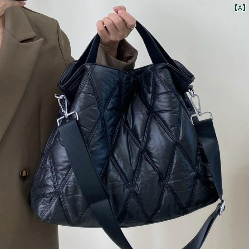 トートバッグ レディース 軽量 大容量 菱格子柄 ブラック ショルダー 斜めがけ 手提げ カジュアル 日常使い 通勤 通学 外出 コーディネート バッグ 鞄 肩掛け