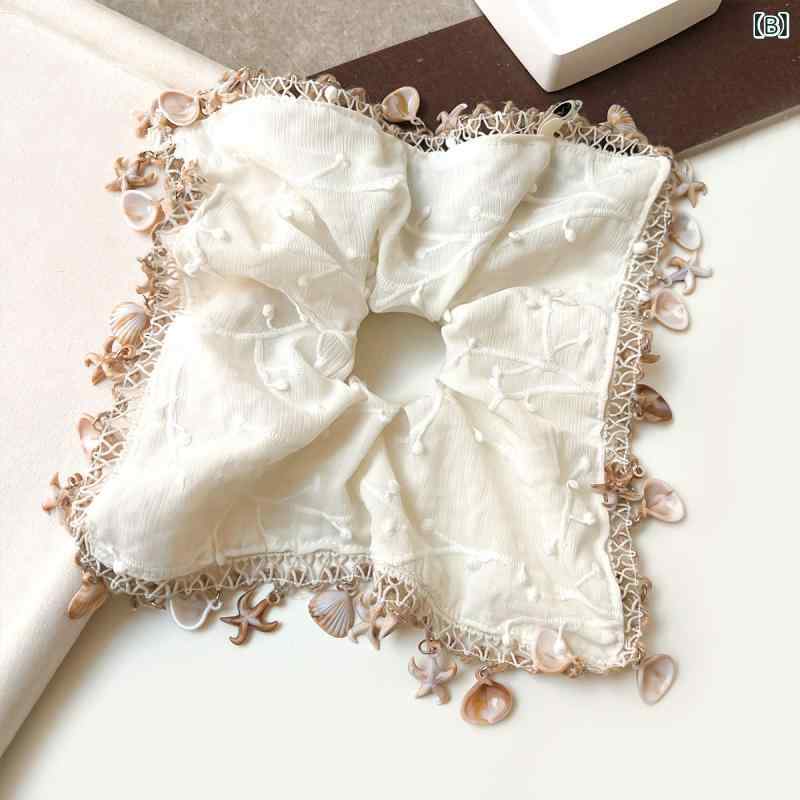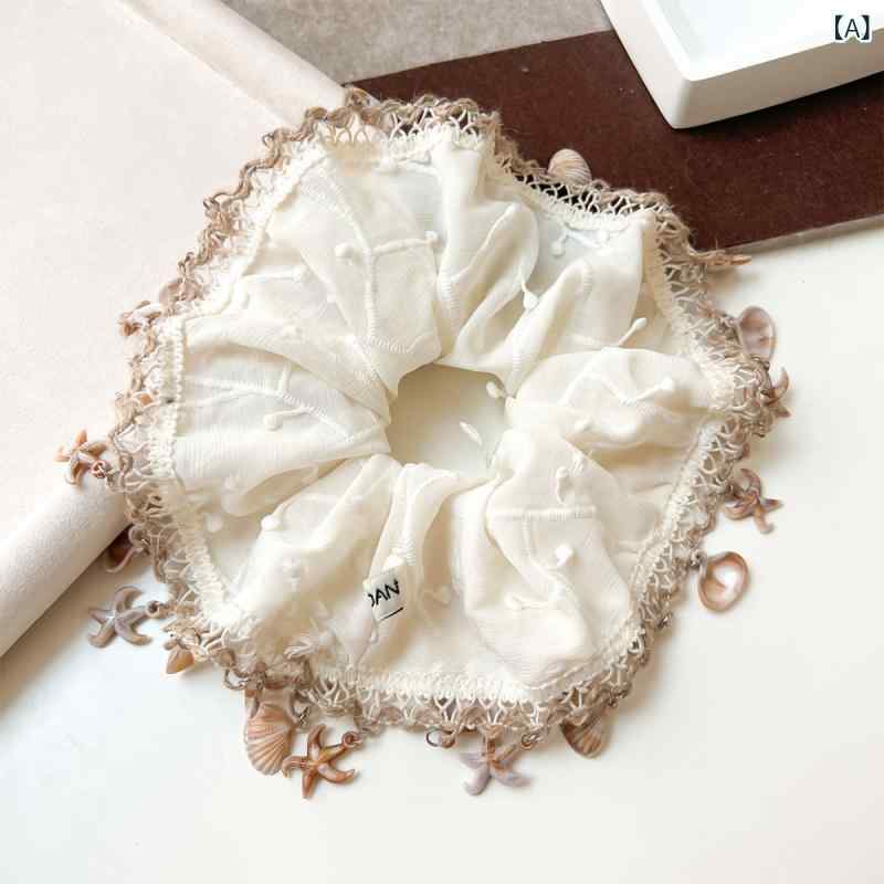 ヘアゴム レディース 大型 貝殻 花柄 レース フリル スクエアスカーフ ヘアリング 春夏 ビーチ 海辺 エスニック風 ロマンチック ヘアアクセサリー 高級感