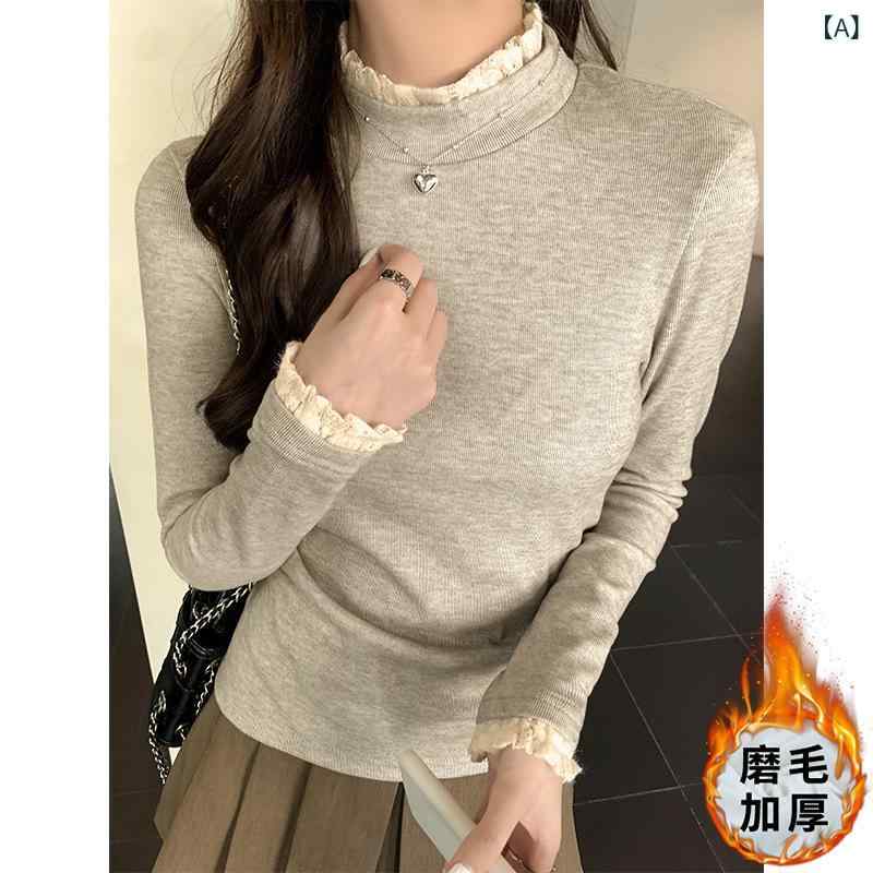 ・素材: ポリエステル・スタイル: プルオーバー・袖丈: 長袖・加工: ピース/スプライス・版型: スリム・着丈: ミディアム・襟型: 半高領・袖型: 通常袖・装飾: レース・色: キャメル,アプリコット・サイズ: S,M,L,XL・スタイル: シンプル