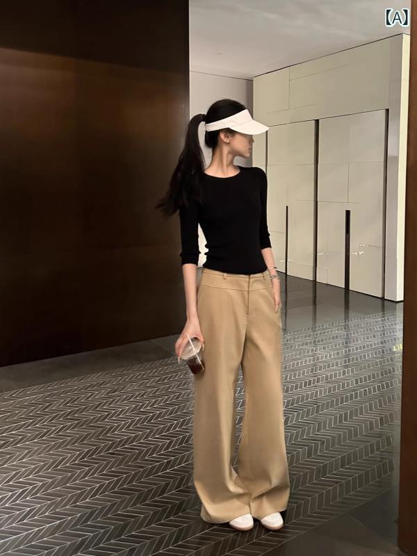 レディース パンツ カーキ ルーズ ストレート レトロ ミニマリスト カジュアル 日常使い 快適 シンプル デザイン 秋冬 コーデ 合わせやすい ベーシック アイテム ハイウエスト なし デイリー ウェア