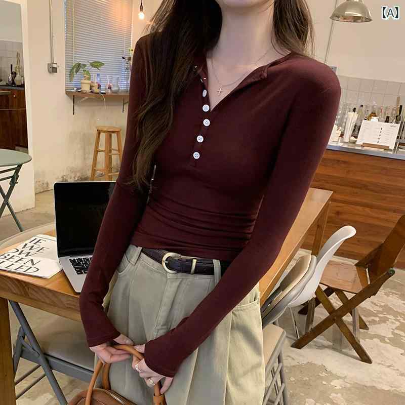 Tシャツ レディース 春夏 Vネック 長袖 シングルボタン 正肩 インナー スリムフィット スリム効果 トップス 修身 内搭上衣 打底衫 辣妹スタイル