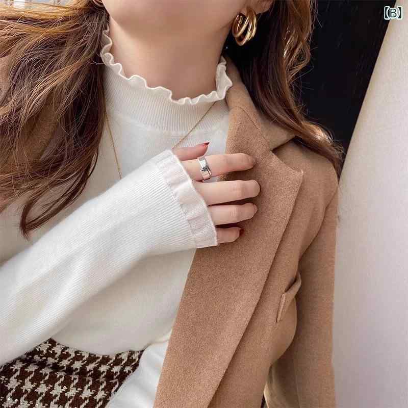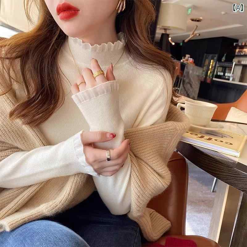 ・パターン: 無地・厚み: 厚手・組み合わせ: 単品・シルエット: スリム・袖型: 通常袖・襟型: ハーフハイネック・袖丈: 長袖・装飾: レース・色: ベージュ,白,黒・サイズ: S,M,L,XL・スタイル: 通勤・着用方法: プルオーバー