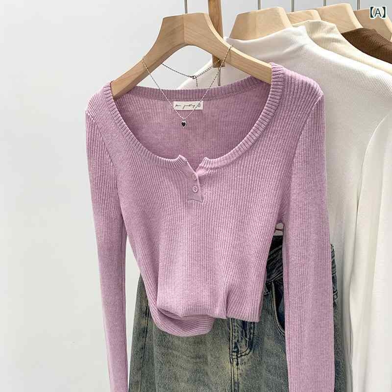 ・素材: ポリエステル・シルエット: スリム・袖タイプ: スタンダード・首元: Uネック・袖丈: 長袖・ディテール: ボタン・着丈: 普通款(50cm<着丈≤65cm)・カラー: 紫,黄,杏,深灰・サイズ: S,M,L・着用方法: プルオーバー・タイプ: ニット