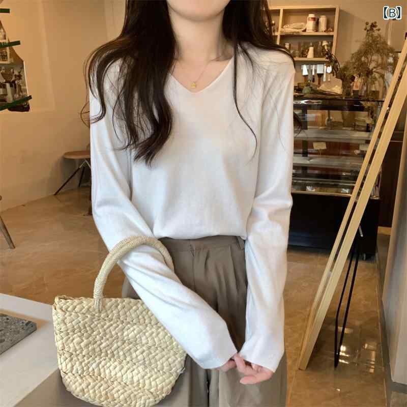 ・柄: 無地・組み合わせ: 単品・シルエット: ゆったり・袖デザイン: 通常袖・襟: Vネック・袖丈: 長袖・色: フォグブルー,白,黒,オートミール,アプリコット,パープル,ラストレッド,フラワーカメル,パープルレッド,シルバーグレー,コーヒー・サイズ: S,M,L,XL・着用方法: プルオーバー・スタイル: 通勤