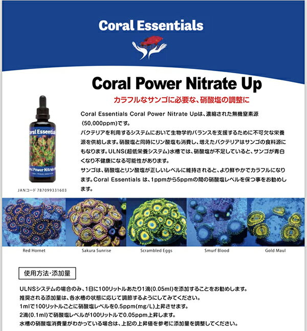 コーラルエッセンシャルズコーラルパワーナイトレイトアップ 100mLCoral Essentials Coral Power Nitrate Up