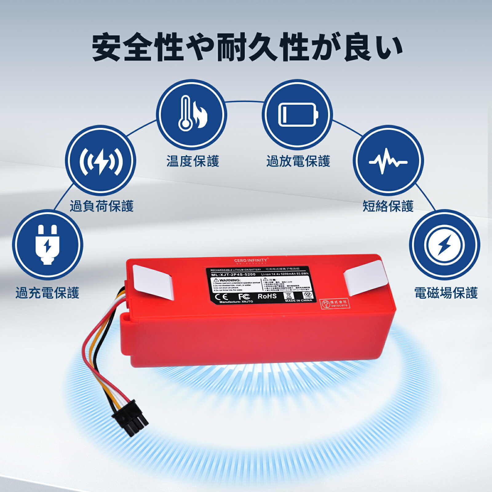 ブランド XIAOMI 電圧 14.4V 容量 5200mAh 純正品型番 対応機種 XJT-2P4S-5200 S5 S6 S50 T7Pro T7S S6MaxV S5Max S7 メーカー型番 DTXIAJT2P4SRD52-AAA-YKNRZE XJT-2P4S-5200 この商品は互換用バッテリーです ■重要注意事項■ 1. 製品仕様は改良のため予告なく変更する場合がございます 2. 実際の駆動時間は使用条件により異なります 3. 正規品とは外装デザインが異なる場合があります 注文前の重要確認事項 ▲個人輸入商品の利用制限 ■注文者本人による「使用/消費」のみ許可 ■第三者への譲渡・転売は電気用品安全法第29条違反 商品仕様について ◆同一性能商品の価格差はメーカー部品調達先の違いによるもので、品質・機能に差異は一切ありません 品質保証基準 ◆PSE認証について ■生産時期,モデル更新に伴い申請業者が変更される場合あり ■全て「電気用品安全法」適合品(認証番号要確認可) ?PSEマークの種類:PSE ?届け出事業者名:株式会社zerocero