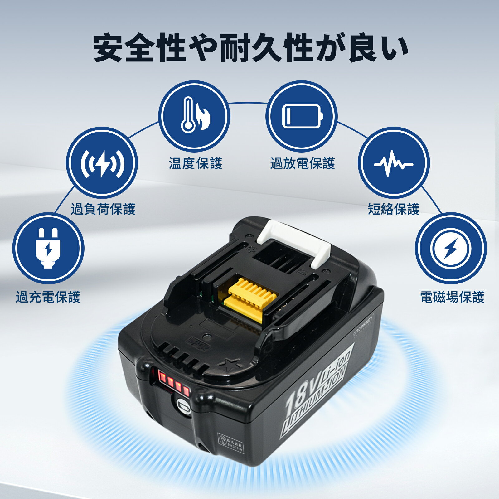 ブランド MAKITA 電圧 18V 容量 6000mAh 純正品型番 対応機種 194204-5 194205-3 194205-5 194230-4 194309-1 196399-0 196673-6 BL1815 BL1815B BL1820 BL1820B BL1825 BL1830 BL1830B BL1835 BL1835B BL1840 BL1840B BL1845 BL1845B BL1850 BL1850B BL1850B-2 BL1860 BL1860B BL1890 LXT400 LXT-400 ADP05 ML808 RC200DZ ML805 ML807 ML803 WD181DZK WD181D UT130DRG KP180DRF CL280FDRFW CL281FDZW CL282FDZW CL182FDRFW CL180FDRF CL181FDRF CL181FDZ CG180DRF CM501DZ VR350DRGX VR450DRGX VR350D CL501DZ JV182DRF PJ180DRF ML811 JS161DRF MR202 MR202B LS610DRG ST312DRF ST312DZK MUC204DGNR MUC204DRGX MUC254DZ UC122DRF MUC254DGXR MUC254CDZR MUC204DZ MUC252D MUC252DPG2 MUC252DRM2 MUC252DZ MUC256DGF MUC256DGFR MUC256DZF MUC256DZFR MUC303DPG2 MUC303DZ MUC306DGF MUC254CD CS553DRGXS CS553DRG CS551DRG CS551DRGXS GA402DRF GA701DPG2 GA700DPG2 GA412DRGX GA412DRG GA412D GA404DRGXN GA404DRGN GA404D GA418DRGX GA418DRG GA418D GA408DRGX GA508DRG GA408D RT50DRG JN161DRF PP200DRG GD800DRF HR182DRGXV HR165DRGX HR244DZK HR244DRTXV HR244DRGXV HR202DRFX HR182DZK HR165DZK HR244DRGX HR263D HR263DPG2 HR263DPT2 HR263DRM2 HR263DZK PT353DRG CF203DZ CF201DZW FJ218DZ FJ212DZ FJ213DZ FJ416DZ FJ502DZ FJ216DZ FJ310DZ FJ214DZ FJ414DZ FJ204DZ FJ402DZ FJ202DZ FJ303DZ FJ406DZ FV210DZ MUB184DRGX UB182DRF MUB362DPG2 MUB362D MUH500DRG MUH600DZ MUH551DPG2 ML800 PB180DRGX PB181DRGX SD180DRGX TM51DRG TM51DRF HS474DRGX HS474DRG HS475DRGX HS474DZ HS471DGS HS471DRG HS471DRGW HS471DRGB HS471DZS HS471DZ HS611DRGX HS631DGXS HS630DRGX HS610DZ HS631DRGXB HS630DRFX HS631DZ MUH264DSH MUH263DRF MUH266DZ MUH264D MR050 MR113 MR108 MR107 MR102 BO180DRF PO500DRG JR187DRGX JR186DRGX JR188DRGX JR184DRF JRDPG2 JR187DZK MUR185SDSF MUR185UDRG MUR186UDRG MUR185UD MUR189DSF MUR182UDRF MUR183UDRF MUR181DRF MUR185LDRF MUR186LDRF MUR186UD MUR182UDZ MUR365D MUR365DPG2 MUR365DPT2 MUR365DZ MUR366D MUR366DPG2 MUR366DPT2 MUR366DZ MUR367D CF300DZ KS513DRG KS511DRG VC750DRG VC864DZ FN350DRG CJ204DZ CV201DZ MUS155DSH MUS104DSH MUS156DZ MUS154DZ SC102DRGX SC121DRG MUH305DRF MUH404DRF MUH365DZ MUH464DZ SC192DRG SC162DRG TR180DRGX VC350DRF ML184 CU180DZ VP180DRG 480DRGX 483DRFX 458DRGX 484DRGX 484DRTX 481DRGX 458DRFX MUM600DSH MUM602DZ MUM600D MUM168DRF LS600DRG WT310DPG2 SP601DZ LW141DZ VC265DZ VC260DZSP VC860DZ VC261DZ VC260DZ MUX60DPG2M MLM380DPG2 MLM431DPG2 MLM460DZ UP361DPG2 UP361DZ MHW080DPG2 PDC01 RV150DRG RV250DZ TS141DRGX TS141DRGXB TS141DZ TL061DRF TP141DRGX TP141DRFX TP141DZ DF481DRGX DF458DRGX DF484DRGX DF484DRTX DF483DRFX DF480DRGX FS454D DF458D FS600DRG FS453DRG FS453DRT FS454DRG FS455DRG TW1 メーカー型番 DTBPBL1860B-4D-AAB-YKURZE 194205-3 この商品は互換用バッテリーです ■重要注意事項■ 1. 製品仕様は改良のため予告なく変更する場合がございます 2. 実際の駆動時間は使用条件により異なります 3. 正規品とは外装デザインが異なる場合があります 注文前の重要確認事項 ▲個人輸入商品の利用制限 ■注文者本人による「使用/消費」のみ許可 ■第三者への譲渡・転売は電気用品安全法第29条違反 商品仕様について ◆同一性能商品の価格差はメーカー部品調達先の違いによるもので、品質・機能に差異は一切ありません 品質保証基準 ◆PSE認証について ■生産時期,モデル更新に伴い申請業者が変更される場合あり ■全て「電気用品安全法」適合品(認証番号要確認可) ?PSEマークの種類:PSE ?届け出事業者名:株式会社zerocero