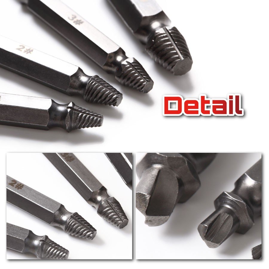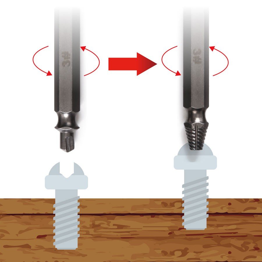 錆びや潰れなどで動かないボルトを緩めるインパクトドライバー用のセットです。 ネジ頭をドリルで削ってから、エキストラクター側にはめ直し、回転させると、簡単にネジを外すことができます。 穴つぶれ 潰れたネジにドリル部分で穴を作りネジ部でゆっくり引きぬくだけ 1#:適するネジ直経:3-5mm 2#:適するネジ直経:4-8mm 3#:適するネジ直経:5-10mm 4#:適するネジ直経:6-12mm コンパクトで邪魔にならないサイズです! サイズ・特徴 パッケージサイズ:約20cm×約13cm×約4.5cm