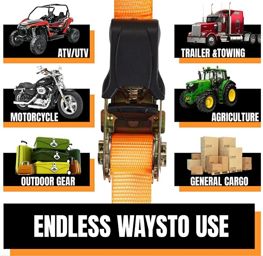 荷締ベルト ラチェット ラッシングベルト 25mm 荷締めベルト ラチェット式 4本セット タイダウンベルト フック バイク用 荷締め 引越 積載 運搬 荷台