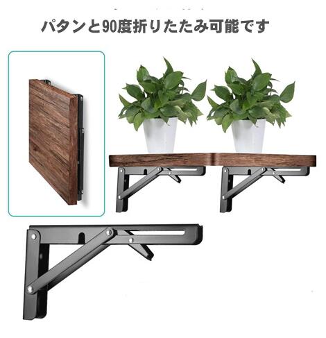 棚受け金具 20cm 90° 折りたたみ 2本セット 強度UP3穴方式 折り畳み アイアン L字型 ブラケット 棚支え ネジ一式付き DIY