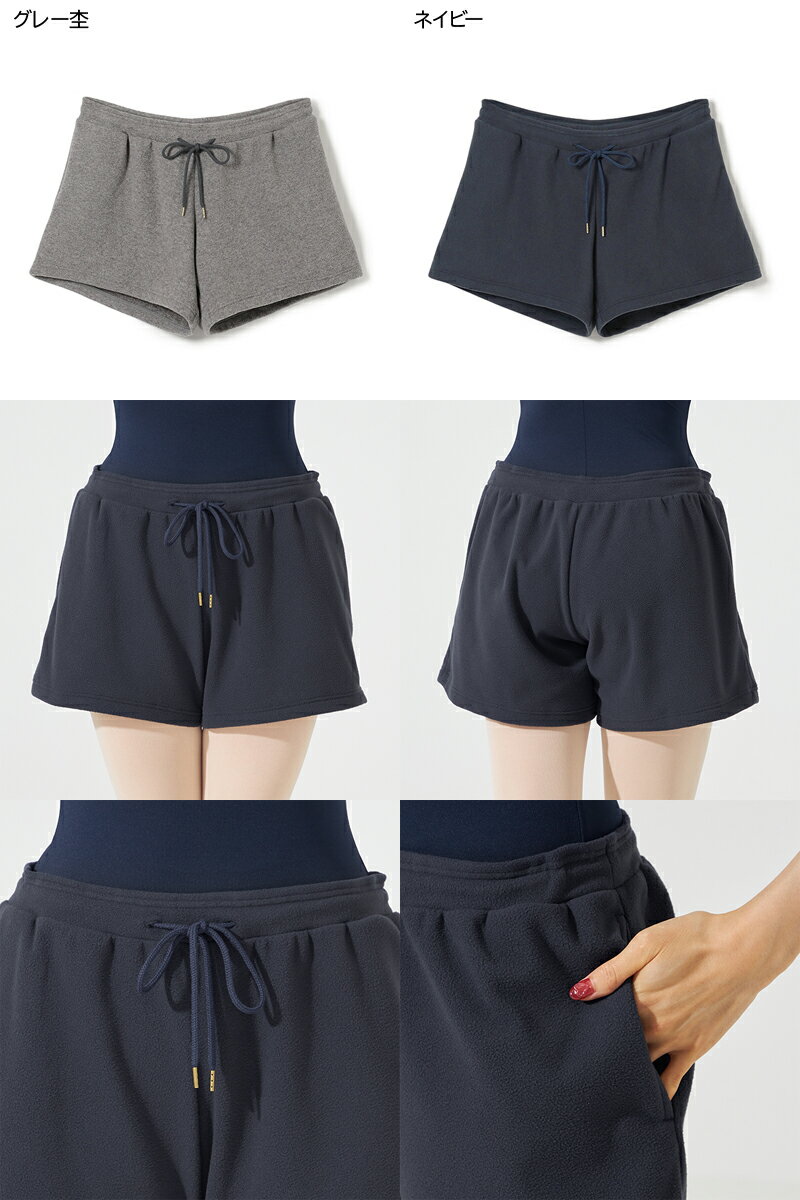 冷えやすいヒップ周りをしっかりと温めるボックスシルエットのショートパンツ 【デザインポイント】 両サイドにポケット付きで実用性に優れた1枚。 冬のレッスンシーンから舞台裏まで活躍するカバーアイテムとウォームアップウェア。 ボリュームを抑えたライトタイプのフリースは温かさがありながらもこもこせず、すっきりとしたシルエットでコーディネートに取り入れられる冬の防寒アイテム。 【素材】 上質なマイクロファイバーを使用した、なめらかな風合いの中肉フリース素材を使用。 ●サイズ:S、M●股上:S-約15cm、M-約15cm ●股下:S-約12cm、M-約12.5cm ●裾幅:S-約30.5cm、M-約31.5cm●カラー:029ネイビー、305杢グレー●素材:スーパーマイクロフリース(ポリエステル100%)●原産国:日本[ チャコット レディース サイズ表(cm)] サイズ ウエスト ヒップ S 56〜62 79〜89 M 61〜67 85〜93