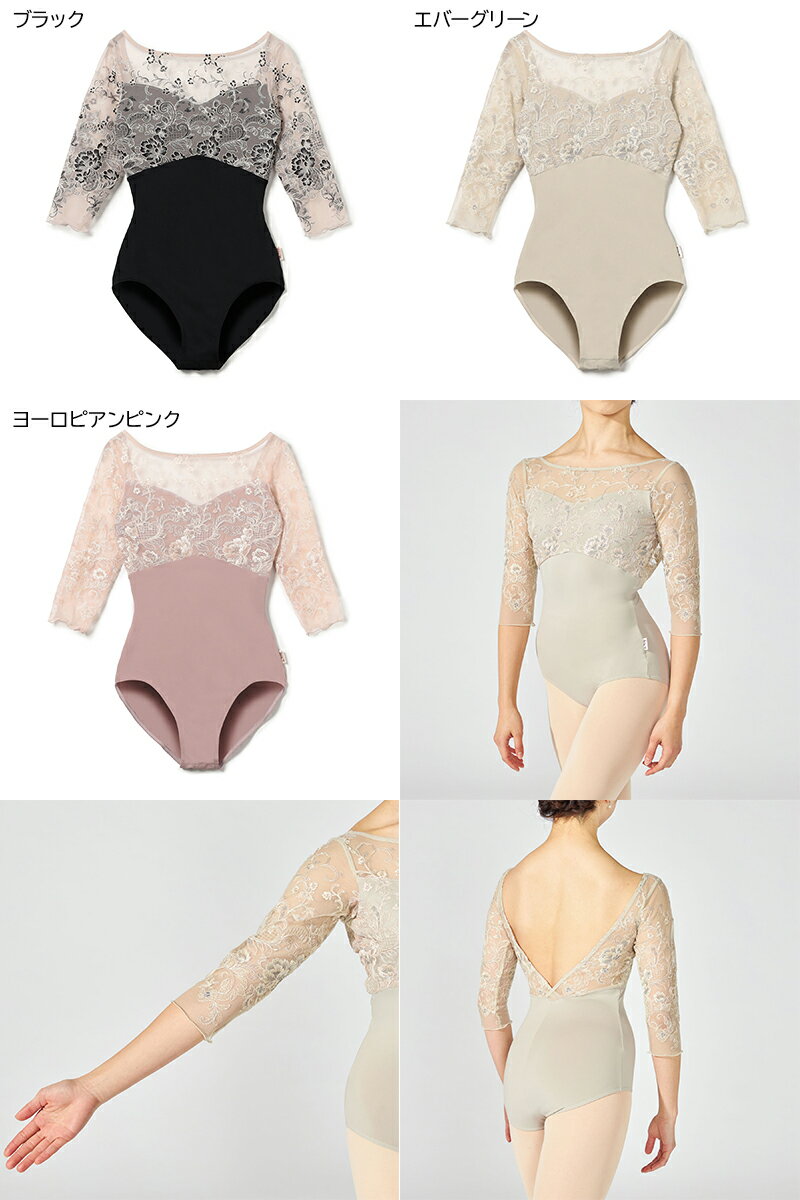 コード糸を用いてボタニカル柄を立体的に表現した、エレガントで高級感のあるエンブロイダリーチュールを使用した6分袖レオタード 【デザインポイント】 バストアップと袖にエンブロイダリーチュールを使用した、このラインならではの贅沢な仕立て。 ビスチェラインにはネラこだわりの『スウィートハートネック』のカッティングを採用。 高めでサイドに広く開いたネックラインが、エレガントな印象を引き立てる。 《裏仕様》バストパッドポケット付き●サイズ:S、M、L●カラー:009ブラック、038エバーグリーン、080ヨーロピアンピンク●素材:エンブロイダリーチュール(ナイロン86%、ポリウレタン14%)、NYハイマルチベア天竺消臭(ナイロン88%、ポリウレタン12%)●原産国:日本[ チャコット レディース サイズ表(cm)] サイズ 身長 バスト ヒップ S 146〜154 70〜80 79〜89 M 154〜162 79〜87 85〜93 L 162〜170 86〜94 90〜98