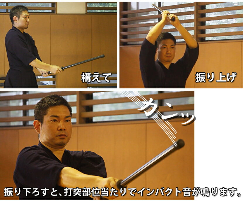 「手のうち」について考えるきっかけになる 世界初の「音」で鍛えるトレーニングギア 場所を選ばないコンパクトな練習具 【サイズ】 Lサイズ(Type L) 長さ:700mm 重さ:630g 握りの太さ:30mm Sサイズ(Type S) 長さ:620mm 重さ:582g 握りの太さ:30mm 【ご使用方法】 相手の面当たりでインパクト音が鳴るように、正面素振りで練習してください。 【注意事項】 ●本製品は剣道の練習器です。他の用途には絶対に使用しないで下さい。 ●製品の分解、改造は絶対にしないでください。 ●必ず各部に異常がないか確認してから使用してください。以上が有る場合は使用しないでください。 ●使用の際は、十分なスペースを確保し、周囲に人や物がないことを確認してから使用してください。 ●熱や紫外線の影響により変形・変色・変質することがありますので、直接日光の当たる場所などに放置しないで大事に保管してください。 ●医師から運動を制限されている方は、事前に意思とご相談の上ご利用ください。また、運動前に必ずご自身で体調チェックを行い、体調不良の場合には練習を中止して下さい。剣道の基礎を「楽しく」「正しく」身につける。正しい素振りが音でわかる! 「面鳴り」の販売です! 素振りは実技の原点です。 剣道上達を目指すために必要不可欠な稽古です。 面鳴りでトレーニングすることで、 筋力アップだけでなく、竹刀の軌道、止める位置、左右の手のバランス、 手の内の作用や冴えなどを楽しく鍛えることが出来ます。 面鳴りとは剣道教士八段が開発した練習用品です。 相手の打突部位当たりでインパクト音が鳴るように、 正面素振りで練習をするトレーニングギアです。 遠心力で器具内のおもりがスライドし先端に当たり音が鳴る仕掛けなので、 力の入れるポイントとスピードのバランスが取れないと、 うまく音が鳴らない仕組みになっています。 面鳴り独特の快音を鳴らすことで、 「理想の打突と手の内の冴え」を体感して覚えることができます。 正しい素振りが出来ていれば「カンッ」と音がなります。 誰かに見てもらったり、大きい鏡の前じゃなくても、 正しい素振りが出来ているかどうかがわかります。 また子供たちがゲーム感覚で楽しく剣道の基礎を学ぶことが出来る練習具です。 自主的に素振り稽古をする習慣をつけてチーム全体のレベルアップに役立ちます。 素振り用竹刀や木刀でも筋力UPをすることは出来ますが、 正しい素振りが出来ていないと変なクセがついたり、 本当に必要な部分に筋肉がつかなかったりします。 面鳴りだと正しい素振り稽古が出来ていないと音がなりません。 短く重い練習具なので、場所を選ばず稽古が出来ます。 剣道教士八段による面鳴りの使用方法の動画を公開しています。