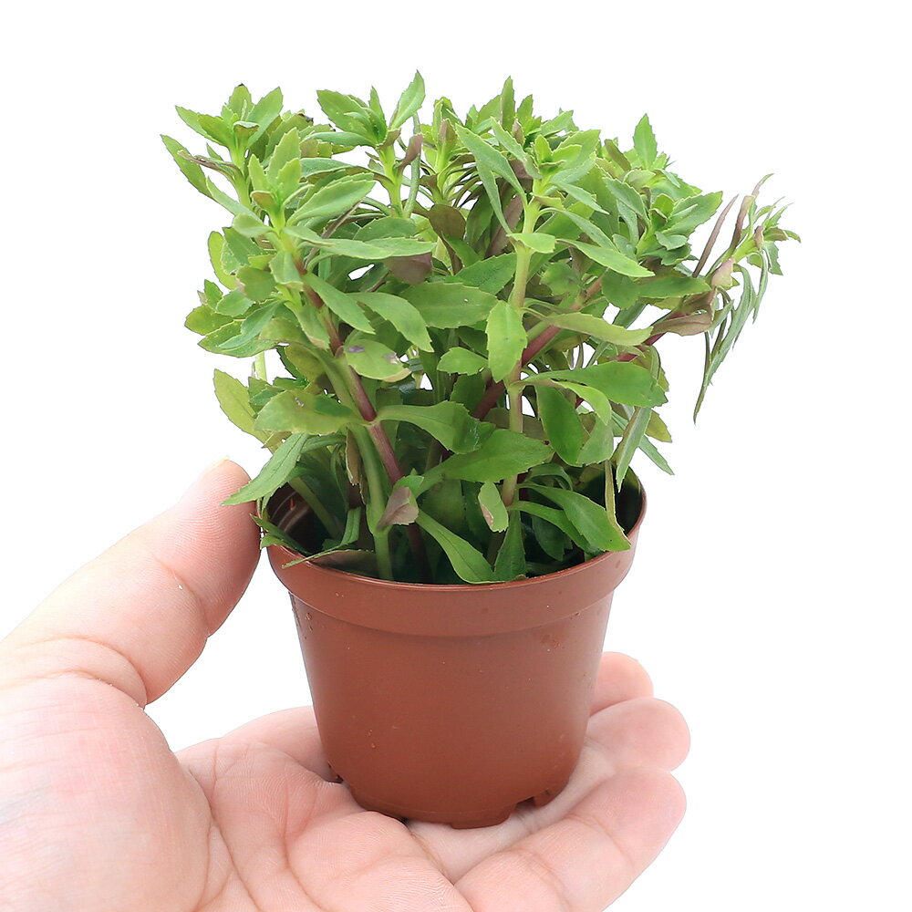水上で蓄えられた活力や新しい水環境に慣れやすいため、水中葉を水槽内に入れるよりも生き生きとした水中葉が得られます。葉がワインレッドに染まる美種!ニューオランダプラント販売単位本(バラ)発送サイズ10cm前後別名−学名(※)Limnophila sp.?(※)…改良品種や学名が不明の種は流通名での記載の場合があります。分類ゴマノハグサ科(Scrophulariaceae)シソクサ属(Limnophila)分布アジアどんな種類?育成難易度 → ★★★☆☆ゴマノハグサ科(Scrophulariaceae)の植物。ボリューム感のある輪生葉と環境によってワインレッドに染まる大変美しい種。葉序は6〜8程度の葉を輪生させ、葉形は披針形ないし広線形、葉縁は鋸歯で円頭凸端です。中央の葉脈がはっきりとします。オオアブノメ属(Gratiola)の記載でしたが、形状、芳香などからシソクサ(Limnophila)の仲間だと思われます。古くからあるオランダプラントとは別種です。葉の表面は黄緑からワインレッド、葉裏は通常ワインレッドです。育成は60cm水槽で3灯以上、CO2添加あり、酸性から中性のpHで底床と水中の肥料分を定期的に補充してあげることで綺麗に育ちます。育成要件&データ光量 → 60cm20W3灯以上(2400〜3000lm)CO2 → 無くても可 1滴/3秒(60cm標準水槽相当)pH → 5〜7GH → 0〜6kH → 0〜6温度 → 20〜26度底砂 → ソイル、砂、大磯推奨水槽 → 30cm以上植栽位置 → 前□■■■□後草姿 → 有茎草最大草姿 → 横幅7cm生長速度 → 遅め増殖方法 → 差し戻し、枝わかれ※…育成環境は一例です。必ずしもこの環境下であれば育つことを確約するものではございません。注意※表記サイズは1株(1本)でのおおよその目安です。育成環境や、成長の度合いにより最大サイズは異なります。※入荷状況等により、ポットなし1ポット分での発送となる場合がございます。PSBQ10 ピーエスビーキュート 淡水用 30mL5個セット 光合成細菌 バクテリア 熱帯魚(生餌)淡水用 微生物で水質向上セット エサ用ゾウリムシミックス+PSBQ10 本州四国限定パワーハウス ベーシック(ソフトタイプ) Sサイズ 淡水用 5リットル 微酸性 ろ材 pH維持Plants Green プランツグリーン 250ml (水草の栄養液)(熱帯魚)オトシンクルス(3匹) 北海道・九州航空便要保温(エビ)ミナミヌマエビ(10匹)(+1割おまけ) 北海道・九州航空便要保温Fe Energy(エフイーエナジー) 400g 5mm (水草の栄養素)Fe Energy(エフイーエナジー) アクア 濃縮タイプ 20mL (水草の栄養液)魚が簡単に飼える リーフプロソイル pHダウン 8L pH4.5〜5.5 お一人様3点限り 吸着ソイル 国産 熱帯魚 用品日本動物薬品 ニチドウ 水草が育つCO2リキッド 2本入 (緑)アクロ 化学反応式CO2ジェネレーターセット クエン酸重曹付属 水草育成 … 熱帯魚 有茎 ナ行 plants20071207 水草 後景草 赤い all_plants 水草赤い wp_kywrd _aqua wptop9_190417 point5wplants y22m01(水草)ニューオランダプラント(水上葉)鉢植え(無農薬)(3鉢) 北海道航空便要保温■この商品をお買い上げのお客様は、下記商品もお買い上げです。※この商品には付属しません。■PSBQ10 ピーエスビーキュート 淡水用 30mL5個セット 光合成細菌 バクテリア 熱帯魚(生餌)淡水用 微生物で水質向上セット エサ用ゾウリムシミックス+PSBQ10 本州四国限定パワーハウス ベーシック(ソフトタイプ) Sサイズ 淡水用 5リットル 微酸性 ろ材 pH維持Plants Green プランツグリーン 250ml (水草の栄養液)(熱帯魚)オトシンクルス(3匹) 北海道・九州航空便要保温(エビ)ミナミヌマエビ(10匹)(+1割おまけ) 北海道・九州航空便要保温Fe Energy(エフイーエナジー) 400g 5mm (水草の栄養素)Fe Energy(エフイーエナジー) アクア 濃縮タイプ 20mL (水草の栄養液)魚が簡単に飼える リーフプロソイル pHダウン 8L pH4.5〜5.5 お一人様3点限り 吸着ソイル 国産 熱帯魚 用品日本動物薬品 ニチドウ 水草が育つCO2リキッド 2本入 (緑)アクロ 化学反応式CO2ジェネレーターセット クエン酸重曹付属 水草育成