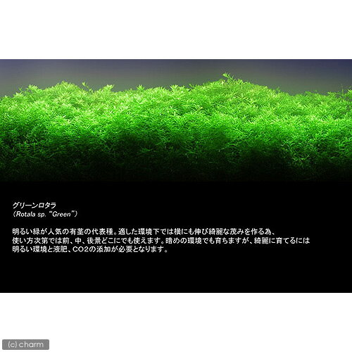 レイアウトの定番種!グリーンロタラ(10本)販売名グリーンロタラ別名ロタラsp.グリーンロタラ ロトンディフォリア グリーン学名(※)Rotala sp.”green”(※)…改良品種や学名が不明の種は流通名での記載の場合があります。分類ミソハギ科(Lythraceae)キカシグサ属(Rotala分布アジアどんな種類?明るい緑の細い葉を持つ有茎草の人気種です。レイアウト水槽などにも、特に多く使われる種類です。明るい環境下では一旦横に這った後、各節目から上に向かように伸びると言う成長の仕方、トリミングに強く、成長も早い為、トリミングを繰り返してある程度好きな形に整えることができるなどの特徴があります。水質にはうるさくなく、中性〜弱酸性であれば問題なく育ちますが、肥料分の要求量が多めなのでソイル系などの底砂を使用するとよいでしょう。レイアウト水槽でよく見かける茂みを作るには高光量とCO2の添加が必要です。またこのような維持の場合、かなりの成長スピードとなりますので底床からの肥料分の補給では間に合わないことが有ります。肥料分が不足すると新芽のグリーンが薄くなったり、縮れたようにいじけてしまうので、この場合は液体肥料を適宜追加して下さい。逆に光量を抑え気味にすると光に向かって真っ直ぐと伸びます。この場合は一般的な有茎草と同じ扱いで育成することができます。環境が適していれば非常に成長が早く、一旦成長が始まればこの草自身がコケに見舞われることはあまりありません。コケ取りの生体は他の成長の遅い草に適した種類を選択するのがお勧めです。水上⇔水中の移行が容易であることから夏の間はビオ植物として楽しむこともできます。水上葉は肉厚の丸みを帯びた葉となり、小さな白い花を咲かせます。やはり水上でも密に生えそろう為、小さな鉢に植え込むと涼しげなビオトープを作ることができます。育成要件&データ育成難易度 → ★★★☆☆光量 → 60cm20W2灯以上CO2 → 1滴/3秒(60cm標準水槽相当)pH → 5〜7GH → 0〜6kH → 0〜6温度 → 20〜28度底砂 → ソイル植栽位置 → 前□■■■■後草姿 → 有茎草最大草姿 → 横3cm 高さ50cm生長速度 → 速い増殖方法 → 差し戻し※…育成環境は一例です。必ずしもこの環境下であれば育つことを確約するものではございません。注意※表記サイズは1株(1本)でのおおよその目安です。育成環境や、成長の度合いにより最大サイズは異なります。※入荷状況等により、ポットなし1ポット分での発送となる場合がございます。Plants Fine セット 各400ml(水草の栄養液)Plants Fine Basic 400ml(水草の栄養液)Plants Fine K(カリウム)400ml(水草の栄養液)Plants Fine Fe(2価鉄)400ml(水草の栄養液)(生餌)ゾウリムシミックス インフゾリア(500ml) 活餌(生餌)淡水ヨコエビミックス(10匹) 活餌(生餌)ゾウリムシミックス インフゾリア(300ml) 活餌アクロ 化学反応式CO2ジェネレーターセット クエン酸重曹付属 水草育成イオン交換樹脂 軟水用 1L … グリーン ロタラ Rotala_green 熱帯魚 中景草 横に広がる ミソハギ科 Lythraceae キカシグサ属 Rotala sp.‘green’ 水中葉 無農薬 20000101 YS sperdys140305 _aqua 44kk greenplants kansya01 ロターラ rp521811miz p5wpss21 seitairk0324 mizuksrk0324 point50921seitai 2305ehstcupon p5mizbrk2305 y22m01 wplanteventcp202503 wplantevent202505・(水草)グリーンロタラ(無農薬)(1本) 構成する商品内容は在庫状況により予告無く変更になる場合がございます。予めご了承下さい。■この商品をお買い上げのお客様は、下記商品もお買い上げです。※この商品には付属しません。■Plants Fine セット 各400ml(水草の栄養液)Plants Fine Basic 400ml(水草の栄養液)Plants Fine K(カリウム)400ml(水草の栄養液)Plants Fine Fe(2価鉄)400ml(水草の栄養液)(生餌)ゾウリムシミックス インフゾリア(500ml) 活餌(生餌)淡水ヨコエビミックス(10匹) 活餌(生餌)ゾウリムシミックス インフゾリア(300ml) 活餌アクロ 化学反応式CO2ジェネレーターセット クエン酸重曹付属 水草育成イオン交換樹脂 軟水用 1L