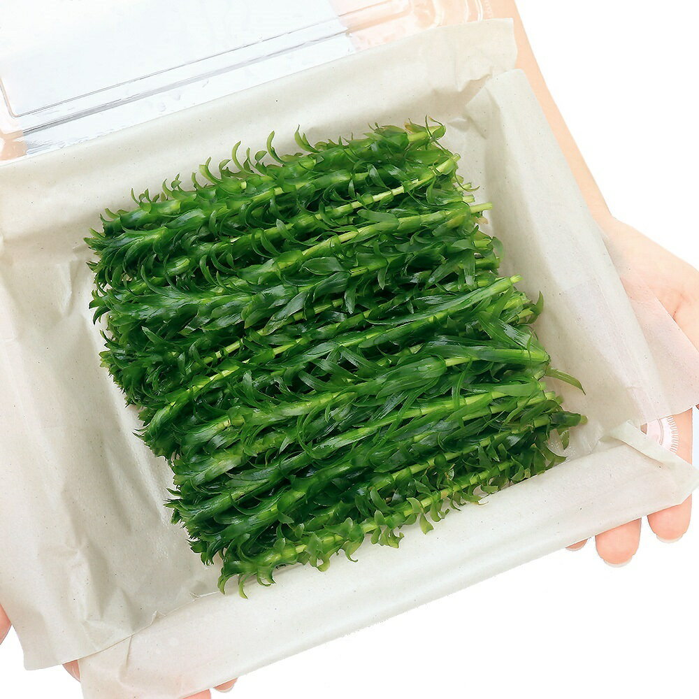 金魚藻の定番!初心者の方にもおすすめです!国産 無農薬アナカリス(50本)発送サイズ長さ約13cm程度※季節や入荷状況により、太さや葉の大きさが画像と異なる場合がございます。残留農薬状態無農薬別名オオカナダモ学名(※)Egeria densaEgeria[Egeriaという女性の名前]、densa[(葉の付き方が)密になった](※)…改良品種や学名が不明の種は流通名での記載の場合があります。分類トチカガミ科(Hydrocharitaceae)オオカナダモ属(Egeria)分布南米どんな種類?透明感のある緑が美しい、金魚藻として有名な水草です。金魚やメダカに使われることが多く、水質浄化作用があるほか生体のおやつにもなります。また、凍結しなければ冬にヒーターが無くても枯れない強健な種類なので、ビオトープにも適しています。育成は容易で、CO2添加無しでも十分に育ち、生体が入っていれば肥料も必要ありません。中性からアルカリ性のpHに適応し、比較的総硬度が高い水質を好みます。酸性の水質では頭頂部の萎縮などが起こりやすくなります。水面に浮かべたり、低床に植え込んだり、重りを付けて沈めたりと、様々な育成方法で楽しめます。育成していると水上に白い花を咲かせることもあります。茎からは白い根が出てくる場合がありますが、景観が気になるようでしたら切り取って構いません。トリミングにも強い水草です。非常に強い繁殖力から、帰化植物として各所で繁殖しています。育成要件&データ育成難易度 → ★☆☆☆☆光量 → 60cm20W1灯以上CO2 → 無しpH → 6〜7.5GH → 0〜6kH → 0〜6温度 → 20〜28度底砂 → 砂、大磯推奨水槽 → 30cm以上植栽位置 → 前□□■■■後草姿 → 有茎草最大草姿 → 50cm以上生長速度 → 速い増殖方法 → 差し戻し※…育成環境は一例です。必ずしもこの環境下であれば育つことを確約するものではございません。注意※表記サイズは1本でのおおよその目安です。育成環境や、成長の度合いにより最大サイズは異なります。※天然物の為、季節や入荷状況により大きさが異なったり、葉の欠けや痛み等がある場合がございます。※手作業による処理を行ってから出荷しておりますが、スネールが混入している場合がございます。ご了承の上お買い求めください。スドー 水草のソフトおもり (ロールタイプ・1本入り)REON AQUA かりねっこ 水草植え付け補助(水草)ザリガニのおやつ 鉛巻き水草 おまかせ3種(無農薬)(1セット)ザリガニPSBQ10 ピーエスビーキュート 淡水用 500mL メダカ 金魚 熱帯魚 光合成細菌 バクテリア(めだか)楊貴妃メダカ(12匹)(国産金魚)更紗琉金(1匹)(エビ)ミナミヌマエビ(10匹)(+1割おまけ)イオン交換樹脂 軟水用 1L アクアリウム用品 Leaf … 熱帯魚 金魚藻 CO2なしでも育つ水草 水草 初心者 後景草 透明感のある 金魚に合う水草 all_plants メダカ水草 金魚 メダカ hansyoku_anakari アナカリス Egeria densa nittanmiryoku_mizukusa 20130411 wp_kywrd kingyomo_osusume kk_ankrs0801 kingyomo2018 notco2_wp kaijyo p5mizbrk2305 pus2503leaf02 pus2505leaf01 seitaieventkg202507 seitaieventam202510・(水草)メダカ・金魚藻 国産 無農薬アナカリス(無農薬)(1本) 構成する商品内容は在庫状況により予告無く変更になる場合がございます。予めご了承下さい。■この商品をお買い上げのお客様は、下記商品もお買い上げです。※この商品には付属しません。■スドー 水草のソフトおもり (ロールタイプ・1本入り)REON AQUA かりねっこ 水草植え付け補助(水草)ザリガニのおやつ 鉛巻き水草 おまかせ3種(無農薬)(1セット)ザリガニPSBQ10 ピーエスビーキュート 淡水用 500mL メダカ 金魚 熱帯魚 光合成細菌 バクテリア(めだか)楊貴妃メダカ(12匹)(国産金魚)更紗琉金(1匹)(エビ)ミナミヌマエビ(10匹)(+1割おまけ)イオン交換樹脂 軟水用 1L アクアリウム用品 Leaf