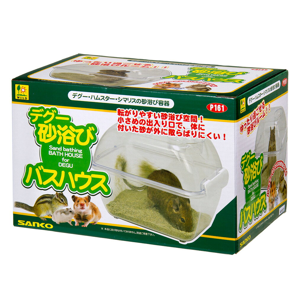 メーカー:三晃商会品番:P161ゆったり過ごせる砂遊びルーム!三晃商会 SANKO デグー砂浴び バスハウス対象デグー、ハムスター、シマリス特長●思いっきり転がれる内部空間で、大好きな砂浴びが存分に楽しめる、置き型タイプの砂浴び容器です。 ●小さい出入り口で、体に付いた砂が外に散らばりにくい構造になっています。 ●付属の天井キャップを取り付ければ、ケージのお掃除中など、短時間でのスペースとして使えます。 ●別売りのハムスターパイプとの接続も可能です。数量1個サイズ(約)幅23.2×奥行15.1×高さ17.8cm入口穴:直径6cm材質PS、PP(本体ロックフック)生産国中国ご注意※本品はデグーや小型小動物等の砂浴び容器です。他の生き物、これ以外の目的に使用しないでください。※ハウス内に生き物を長時間閉じ込めることは絶対にしないでください。また、短時間であっても天井キャップでハウスを閉じて使用する場合は、必ず生き物の様子を良く確認するようにしてください。国産 デグーの浴び砂 1L ゼオライトサンド 消臭ハイペット グルフリ生活 ダブル・ゼロおやつ チンチラ・デグー用 60g三晃商会 デグーサンド 1.5kg 浴び砂 砂浴び デグー お一人様10点限り プレーリードッグ三晃商会 メタルサイレント25 デグー 回し車川井 デグーひょっこりハウス … 20180409 三晃商会 SANKO デグー砂浴び バスハウス P161 4976285251610 YMYM 小動物 鳥 モルモット・チンチラ ハウス 砂浴び 皮膚 ストレス 掘る 毛並 被毛 透明 スケルトン 広い ジャービル 砂ネズミ 清潔 衛生 デグー ハムスター シマリス sadg_sad samm_sad sari_sad opa2_choku三晃商会 デグー 砂浴びセット■この商品をお買い上げのお客様は、下記商品もお買い上げです。※この商品には付属しません。■国産 デグーの浴び砂 1L ゼオライトサンド 消臭ハイペット グルフリ生活 ダブル・ゼロおやつ チンチラ・デグー用 60g三晃商会 デグーサンド 1.5kg 浴び砂 砂浴び デグー お一人様10点限り プレーリードッグ三晃商会 メタルサイレント25 デグー 回し車川井 デグーひょっこりハウス