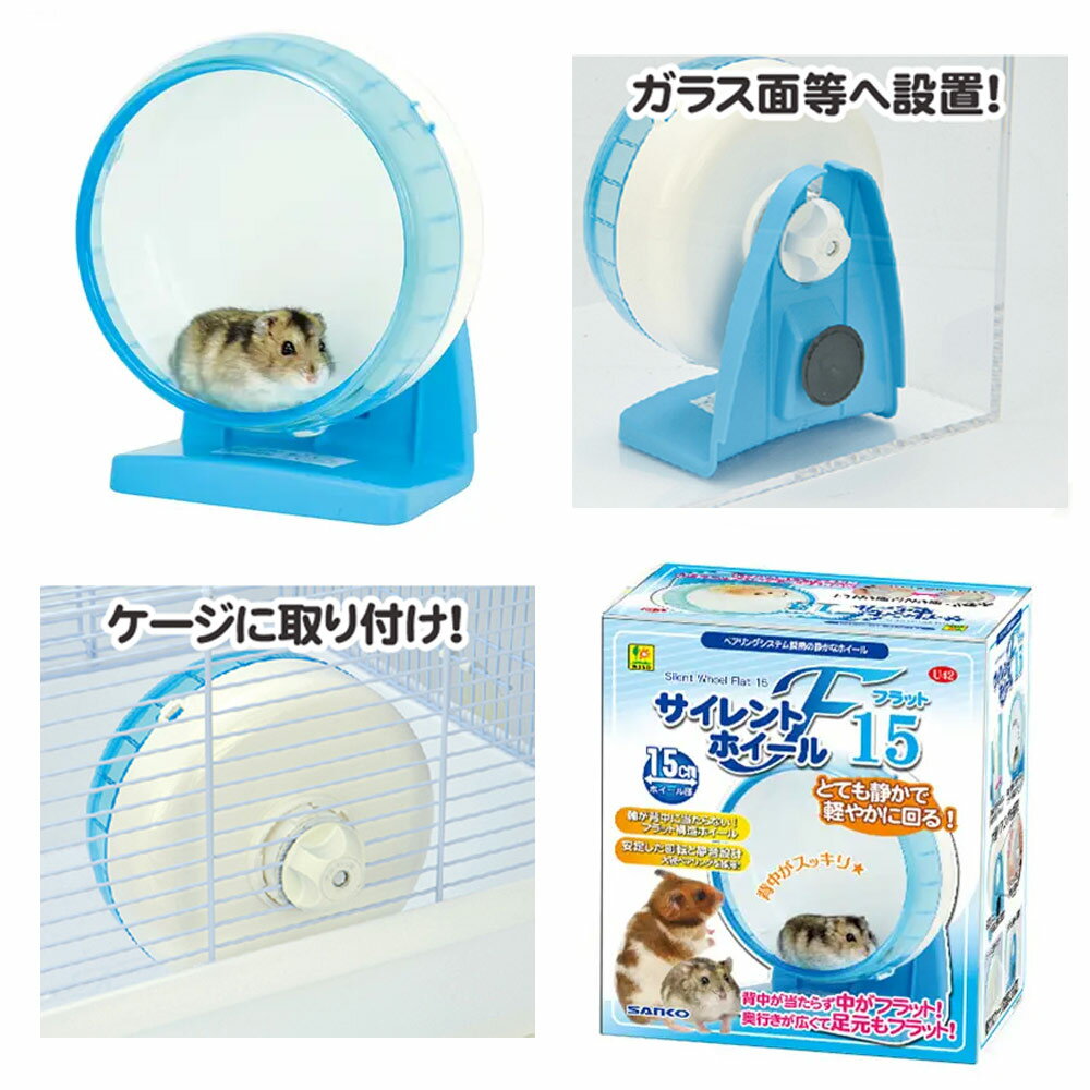 メーカー:三晃商会品番:U42とても静かで軽やかに回る!三晃商会 サイレントホイール フラット15対象ドワーフハムスター(ジャンガリアンハムスター、キャンベルハムスター等)、ゴールデンハムスター特長●人気商品サイレントホイールのリニューアルです。 ●ホイール本体のブレを軽減し、よりスムーズで安定した回転を維持する静音設計になりました。 ●表面の軸キャップを無くすことにより、軸が背中に当たらずに思いっきり走れるようになりました。 ●ホイール内の奥行きを広く確保することで、足元がゆとりあるフラットになりました。 ●ベアリング部とホイールはワンタッチで着脱、汚れがちなホイールを丸ごと水洗いできます。 ●取り付けも、スタンド設置、ワイヤーケージ設置、ガラス面設置の3通りで、様々なケージや環境に対応します。セット内容本体、スタンド、キスゴム、回転パーツ、ロックナットサイズ(約)全体:幅150×奥行き95×高さ175〜204mm ホイール:直径150×奥行き65mm材質PS、ABS、スチール ※鉛は使用していません。原産国中国ご注意※本品はハムスター用の運動器具(回し車)です。他の目的及び他の生体には使用しないでください。 ※本品の取り扱いは丁寧に行ってください。投げたり、転がしたりしないでください。 ※火気には絶対に近づけないでください。 ※直射日光の当たる場所には置かないでください。 ※幼児の手の届かない場所に保管してください。 ※部品の分解や改造をしないでください。 ※必ず、キスゴムが吸着できる壁面やケージワイヤーに取り付けて使用してください。置いただけの状態では、ホイールが転倒する場合があります。 ※使用している間に、固定部(回転パーツ、ロックナット)等がゆるんでくる場合がありますので、使用状況を見ながら、時々確認を行ってください。 ※複数の生き物が居る場所(多頭飼い等)では使用しないようにしてください。 ※回転パーツには、金属部品(ベアリング)を使用していますので、水で洗わないでください。金属部品(ベアリング)が濡れると、サビが発生して、回りが悪くなったり雑音が出る場合があります。 ※ベアリングの構造上、ホイールのブレに若干のバラつきがありますが、ご了承ください。 ※サイレントホイール フラットは無音ではありません。(従来のホイールに比べて回転時に発生する音が静かなホイールです。) ※生き物の生活音や若干の回転音、また、本品をケージに固定する場合にケージ部分が揺れる事によって発する音に関しましては、ご容赦いただきますようお願いいたします。 ※生き物は、種類や性格、体格(体重やサイズ、成長など)により、個体差があります。飼育者の方は生き物の行動や習性をよく理解・観察して本品の使用範囲を超える場合や、異常や危険を感じた場合は、直ちに使用を中止してください。 ※飼育用品は、100%安全な環境を提供できるものではありません。生き物は、成長によって大きさが変化したり、各個体によって性格も異なります。また、四季を通して、様々に取り巻く環境も変化します。大切なペットの安全な飼育環境を常に保てるようにしてあげましょう。 ※製品の仕様は予告なく変更する場合があります。マルカン ウォーターボトル スモールミニ 70cc ハムスター 給水器マルカン ハムちゃんのフード付き食器 50ml ハムスター 食器 エサ皿マルカン ハムちゃんの2階でごはん ハムスター ハウス 遊び場 木製三晃商会 バス・ハウス ドワーフハムスター用 お掃除ミニシャベル付き 小型ハムスター用 砂浴び三晃商会 バスサンド ハムスター用砂浴び砂 1kg お一人様12点限りハムスター用 ペットニード 給水器タイニ(80cc) ウォーターボトル 水飲み器 国産三晃商会 ハムスタープラス・ダイエットメンテナンス 200g ハムスター 餌 総合栄養食三晃商会 高タンパク・アミノゼリー 16g×10個マルカン クリーンホイール ランニングメーター 15マルカン クリーンホイール 15 … 三晃商会 SANKO サイレントホイール フラット15 4976285304200 _animal 小動物 小動物用品 ハムスター hamster ジャンガリアン ジャンガリアンハムスター ドワーフハムスター ドワーフ ゴールデン ゴールデンハムスター キンクマ キャンベルハムスター キャンベル ロボロフスキーハムスター ロボロフスキー カラーハムスター ネズミ ラット マウス パンダマウス ジャービル カラージャービル ファンシーラット mouse U42 回し車 まわしぐるま サイレント ホイール おもちゃ 20200528 tsbs sahm_hwl 玩具 TOY 静か 音がしない silentwheelflat opa2_stop y20m06■この商品をお買い上げのお客様は、下記商品もお買い上げです。※この商品には付属しません。■マルカン ウォーターボトル スモールミニ 70cc ハムスター 給水器マルカン ハムちゃんのフード付き食器 50ml ハムスター 食器 エサ皿マルカン ハムちゃんの2階でごはん ハムスター ハウス 遊び場 木製三晃商会 バス・ハウス ドワーフハムスター用 お掃除ミニシャベル付き 小型ハムスター用 砂浴び三