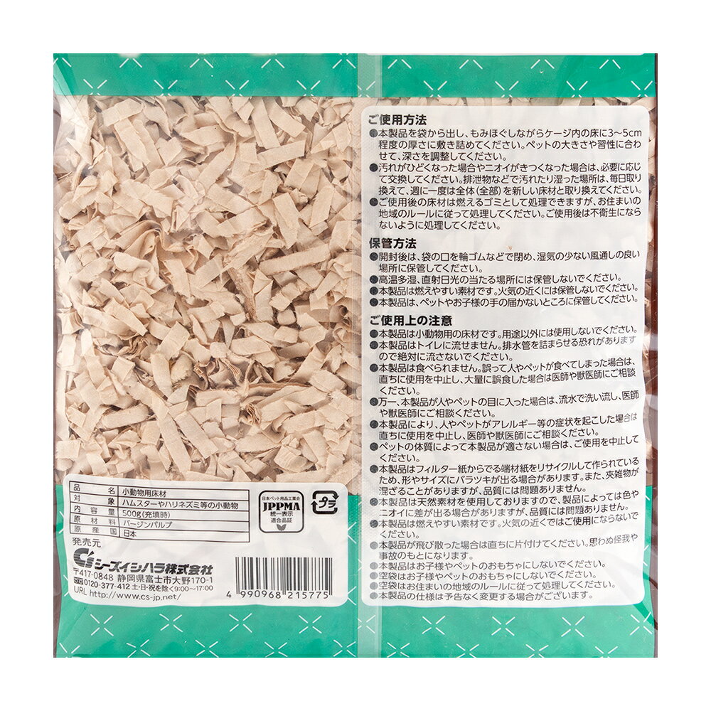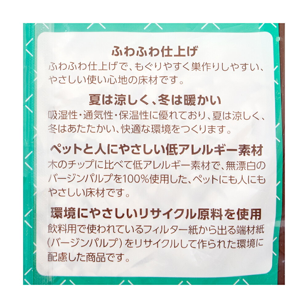 メーカー:シーズイシハラ小動物用紙製床材!クリーンモフ KAMIYUKA ふんわりペーパーマット 500g対象ハムスター・ハリネズミなどの小動物 特長●ふわふわ仕上げで、もぐりやすく巣作りしやすい、やさしい使い心地の床材です。●吸湿性・通気性・保温性に優れており、夏は涼しく、冬はあたたかい、快適な環境をつくります。●木のチップに比べて低アレルギー素材で、ペットにも人にもやさしい床材です。●飲料用で使われているフィルター紙から出る端材紙(バージンパルプ)をリサイクルして作られた環境に配慮した商品です。内容量500g原材料バージンパルプ原産国日本ご使用方法●本品を袋から取り出し、ケージ内の床に3〜5cm程度の厚さに敷き詰めてください。ペットの大きさや習性に合せて適宜調整してください。●汚れた場合やニオイがきつくなった場合は、必要に応じて交換してください。排泄物などで汚れたり湿った場所は毎日取り換え、週に一度は全部を新しい床材と交換してください。●ご使用後の床材は燃えるゴミとして処理できますが、お住まいの地域のルールに従って処理してください。使用後は不衛生にならないように処理してください。ご注意※本品は小動物用の床材です。用途以外に使用しないでください。※本品はトイレに流せません。排水管を詰まらせる恐れがありますので絶対に流さないでください。※本品は食べられません。誤って人やペットが食べてしまった場合には、直ちに使用を中止し、大量に誤食した場合は医師や獣医師にご相談ください。※万一、本品が人やペットの目に入った場合は、流水で洗い流し、医師や獣医師にご相談ください。※本品により、人やペットがアレルギー等の症状を起こした場合は直ちに使用を中止し、医師や獣医師にご相談ください。※ペットの体質によって、個体に適さない場合はご使用をやめてください。※本品はリサイクル原料を使用しているため、製品により色や形、サイズにばらつきがある場合があります。また、夾雑物が混ざることがありますが、品質に問題はありません。※本品は燃えやすい素材です。火気の近くではご使用にならないでください。※本品が飛び散った場合は直ちに片づけてください。思わぬケガや事故の原因になる場合があります。※空袋はお子様やペットのおもちゃにしないでください。※本品の仕様は予告なく変更する場合がございます。お問い合わせについて商品の不明点につきましては、下記にお問い合わせください。シーズイシハラ株式会社TEL:0120−377−412シーズイシハラ クリーンモフ 小動物用床材 KAMIYUKA 〜紙床〜(ホワイト) 500g ウサギ ハムスター ハリネズミシーズイシハラ クリーンモフ 小動物用床材 KAMIYUKA ピンク 500gシーズイシハラ クリーンモフ 小動物用ケージ専用両面吸収シート ワイド 20枚入りシーズイシハラ クリーンモフ 小動物用床材 KAMIYUKA 〜紙床〜(ブラウン) 500g … ハムスター 床材 _animal クリーンモフ KAMIYUKA ふんわりペーパーマット 500g 4990968215775 20200825 GBNM 小動物 鳥 小動物用品 ハムスター・リス 敷材 紙製 紙 ハリネズミ パルプ バージンパルプ 国産 日本製 Clean Moff シーズ シーズイシハラ ペーパー 紙砂 opa2_choku y20m08 linemat 25raf_m_csi 25raf_m0クリーンモフ KAMIYUKA ふんわりペーパーマット 500g×10クリーンモフ KAMIYUKA ふんわりペーパーマット 500g×6■この商品をお買い上げのお客様は、下記商品もお買い上げです。※この商品には付属しません。■シーズイシハラ クリーンモフ 小動物用床材 KAMIYUKA 〜紙床〜(ホワイト) 500g ウサギ ハムスター ハリネズミシーズイシハラ クリーンモフ 小動物用床材 KAMIYUKA ピンク 500gシーズイシハラ クリーンモフ 小動物用ケージ専用両面吸収シート ワイド 20枚入りシーズイシハラ クリーンモフ 小動物用床材 KAMIYUKA 〜紙床〜(ブラウン) 500g