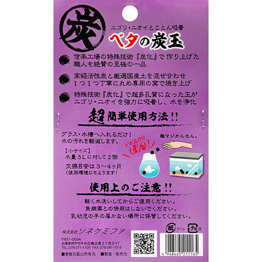 ソネケミファ ベタの炭玉 小 5個入り 関東当日便