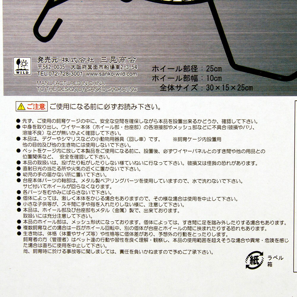 メーカー:三晃商会※メタルサイレント32は諸般の事情により2社製造のため、2種類の商品のうちのどちらかでのお届けとなり、商品の種類の指定はできませんので、予めご了承願います。製造元により異なる仕様はベアリングのサイズのみとなっており、使用感に差異はございません。大きめの小動物に!三晃商会 メタルサイレント25 ホイールベルトセット対象デグー、リス、成体のゴールデンハムスターなどの小動物特長●ホイールとホイール内側に取り付け使用するガードベルトのセットです。 ●ホイールは回転軸部にベアリングシステムを採用した、耐久性と静かさを兼ね備えたメタル製です。 ●ケージワイヤーに引っ掛けてご使用ください。 ●ハムスター用のものと比べ、大きく作られているのでテグーやリスなどの小動物にピッタリです。 ●ベルトはホイール運動中の排泄によるホイール本体の汚れの付着を軽減します。 ●手足がワイヤーメッシュに直接触れずにホイールを回せるので怪我の予防になります。 ●ベルトは本体の端と橋を面のファスナーで留めるだけで接続可能で、外して丸洗いできます。セット内容三晃商会 メタルサイレント25×1個 三晃商会 メタルサイレント25専用 ホイールベルト25×1個サイズホイール部径:25cmホイール部幅:10cmホイール全体サイズ:幅25cm×奥行き15cm×高さ30cmベルト本体:幅9.3×長さ82.5cm材質ホイールベルト:PPご注意※本品はテグーやシマリス・チンチラなど小動物用回し車です。飼育ケージ内設置用です。その他の目的には使用しないでください。 ※個体によっては、激しく本体をかじる場合もあります。その場合は使用を中止してください。※個体によっては、両サイドのフレームに頭をぶつける等して相性が悪い場合もあります。その場合は使用を中止してください。※本品のホイール部はメッシュ形状になっております。個体によっては、すき間に足を踏み外したりする場合がございます。※鉛は使用していません。※1つ1つ職人が手作りしているため、多少網目部分に反りが見られる場合がございます。ご了承ください。三晃商会 デグーサンド 1.5kg 浴び砂 砂浴び デグー お一人様10点限り プレーリードッグイースター デグーセレクション 400g デグーフード えさ エサ 餌アウトレット品 プロバグズ 真空パック生昆虫 ハリネズミ用 3種×1袋(ミルワーム・ライスワーム・シルクワーム蛹)保存用チャック袋 訳あり … 三晃商会 メタルサイレント25 ホイールベルトセット 2250002843855 20221207 mura rknd SANKO 小動物 鳥 ハムスター リス 回し車 デグー ホイール 4976285070907 サイレントホイール おもちゃ ゴールデン ハリネズミ フェレット シマリス 回し 飼い 方 飼う 飼い方 飼育 YMYM hamuomo_pic sadg_hwl sahr_hwl sari_hwl 71prkani キンクマ三晃商会 メタルサイレント25 デグー 回し車三晃商会 メタルサイレント25専用 ホイールベルト25構成する商品内容は在庫状況により予告無く変更になる場合がございます。予めご了承下さい。■この商品をお買い上げのお客様は、下記商品もお買い上げです。※この商品には付属しません。■三晃商会 デグーサンド 1.5kg 浴び砂 砂浴び デグー お一人様10点限り プレーリードッグイースター デグーセレクション 400g デグーフード えさ エサ 餌アウトレット品 プロバグズ 真空パック生昆虫 ハリネズミ用 3種×1袋(ミルワーム・ライスワーム・シルクワーム蛹)保存用チャック袋 訳あり