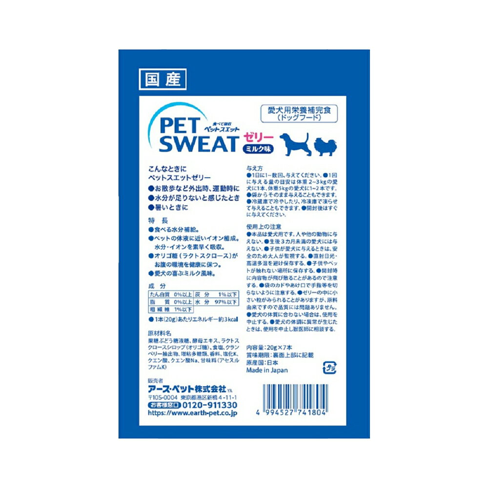 【11/25限定】当選確率2分の1!1等最大100% アース・ペット ペットスエット ゼリー ミルク味 20g×7本 ×12袋 犬用 ドッグフード