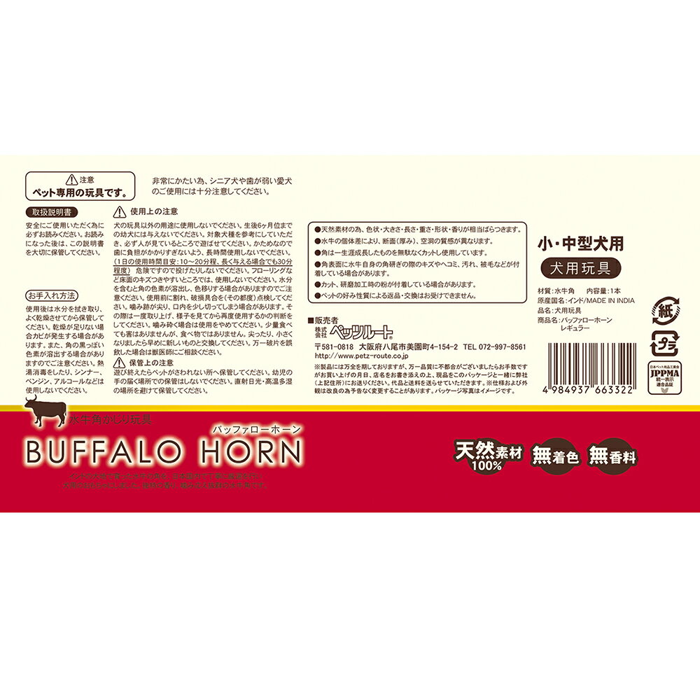 ペッツルート バッファローホーン レギュラー 水牛の角 犬用おもちゃ 小型犬〜中型犬用 関東当日便