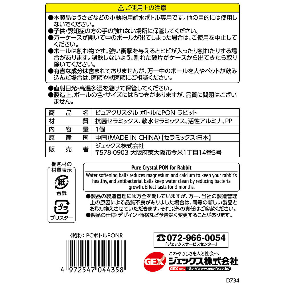 GEX ピュアクリスタル ボトルにPON ラビット カルシウム除去 抗菌 うさぎ 関東当日便