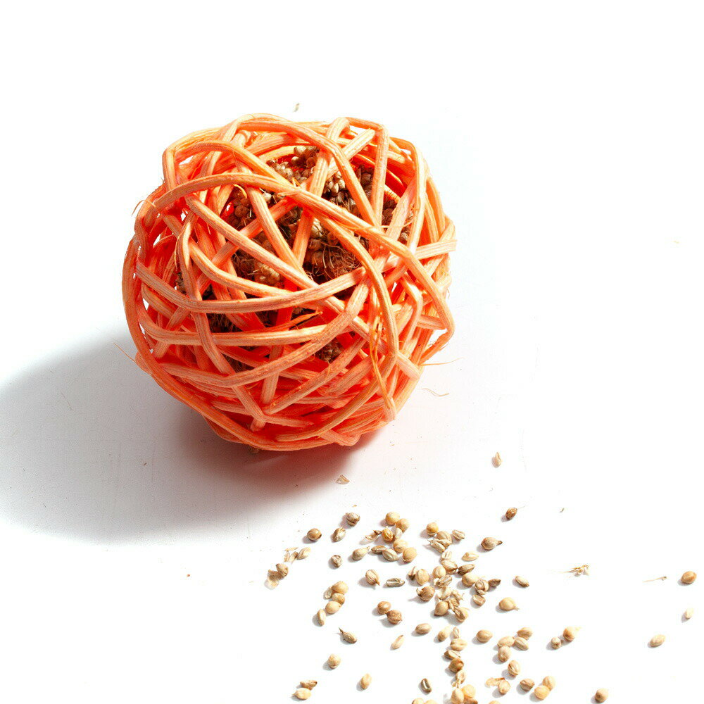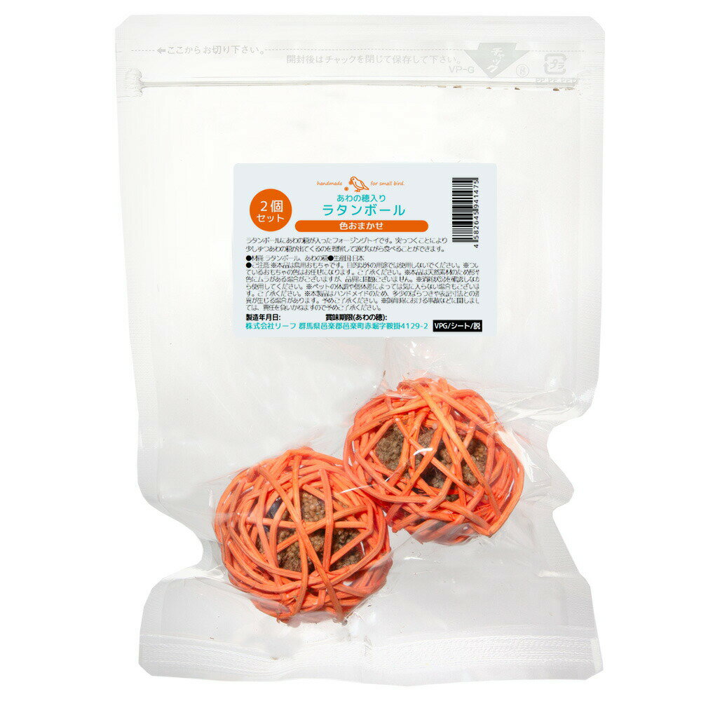 インコのおもちゃ あわの穂入り ラタンボール 2個セット フォージングトイ 色おまかせ 関東当日便