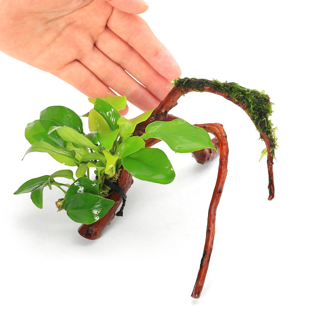 (水草)アヌビアスナナゴールデン&南米ウィローモス付 枝状流木 Sサイズ(10cm〜)(1本)