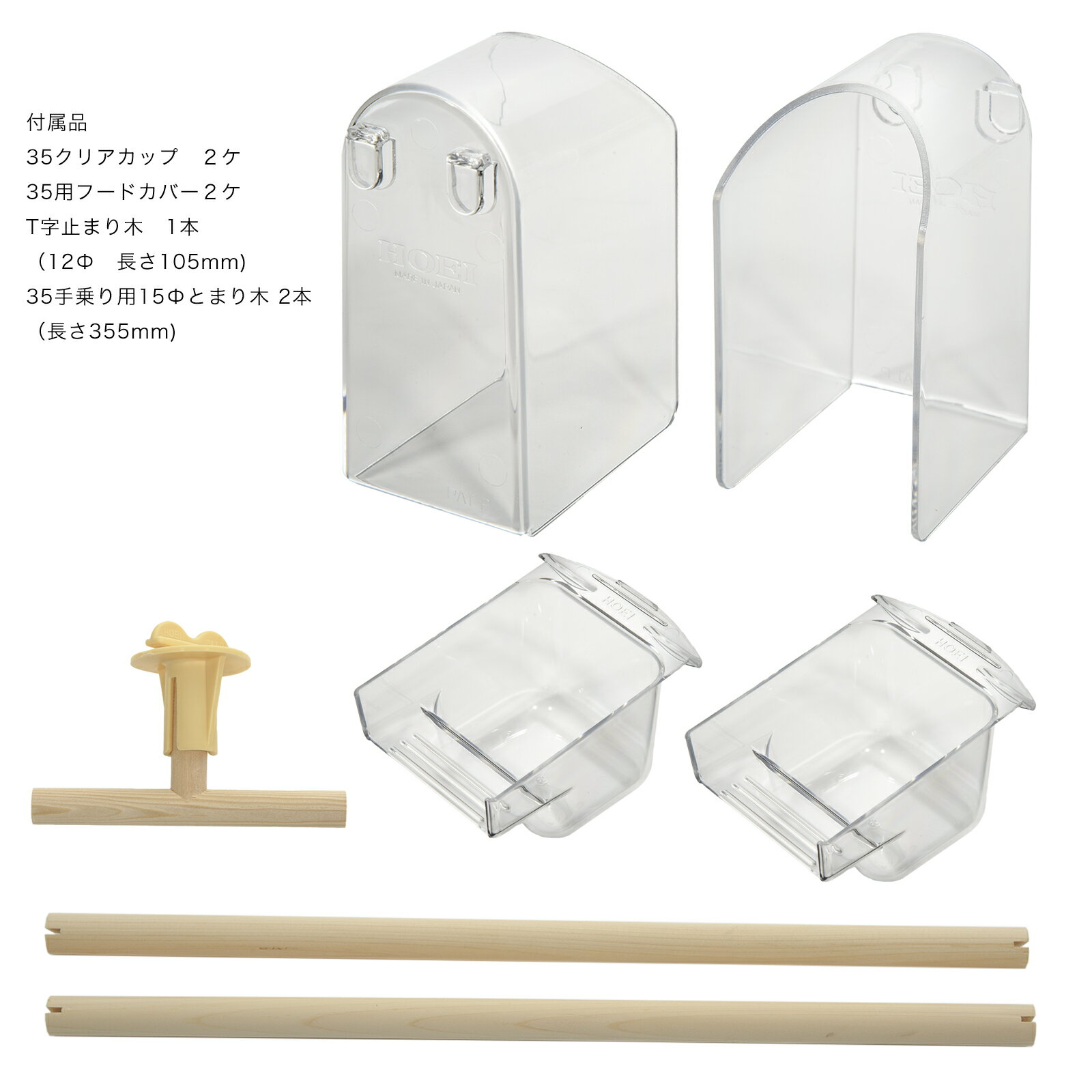 メーカー:HOEI 組立て取り扱い説明書について 組立て取り扱い説明書は、以下よりダウンロード可能です。 組立て取り扱い説明書交換用パーツ・カバー・スタンドについて交換用パーツ一覧はこちら対応カバー一覧はこちら対応スタンド一覧はこちらセキセイインコ・コザクラインコなどの小型の鳥に!HOEI 35手のりG ミントグリーン (37×41.5×54.5cm)対象セキセイインコ、マメルリハ、文鳥、コザクラインコ、ボタンインコ、ビセイインコ、アキクサインコ、サザナミインコ、その他フィンチ・小型インコの多頭飼育など特長●HOEI 35手のりケージは窓が大きく開くので小鳥が出入りしやすく、セキセイインコやコザクラインコなどの小型の鳥に最適なケージです。●青菜・粟穂等の餌付け、ペットヒーター等の取り付けなども非常に楽に行えます。●付属のセット内容も最新の商品ですので、とてもお得なアイテムです。セット内容●天井アミ×1枚●本体横付前アミ×1枚●本体横付後アミ×1枚●35用底(引き出し付)×1枚●35用足付フンキリアミ×1枚●35用シャッター×1枚●35手のり用止まり木15パイ×2本●ホルダー付きT字止まり木12パイ 105mm×1本●35クリアカップ×2ヶ●35用エサカバー×2ヶサイズ(約)組み立てサイズ:幅37×奥行41.5×高さ54.5cm出入口サイズ:幅11.9×高さ19.7cmエサ窓サイズ:幅8.7×高さ9.1cmピッチ(線と線との間):11mm線径:1.6mm35手のり用止まり木15パイ:直径15mm、幅355×奥行15×高さ15mmホルダー付きT字止まり木12パイ 105mm:直径12mm、幅105×奥行42×高さ75mm重量(約)3400g生産国日本適応止まり木HOEI 35手のり用 直径15 止まり木HOEI 35ケージ用 止まり木 直径35−12 2本組 鳥 止まり木ご注意※本品は鳥用ケージです。それ以外の用途には使用しないでください。※本品は鳥が齧っても健康上の問題はございませんが、サビが見られる場合は影響が出る可能性があるため、ご使用をお控えください。※電気吸着にて腐食防止のコーティングを施す際、電気焼けでやや茶色く変色している場合がございますが、変色による生体への影響はございません。※本品は材質の特質上、扉部分の開閉時に音が鳴る場合がございます。ご了承ください。鳥かご HOEI 35手のりG フロスティグレー (37×41.5×54.5cm) チャームオリジナルHOEI おやすみカバー タイプB 鳥ケージ用カバー 35小動物 35手のりなどHOEI めくって清潔シート 手のり35用 15枚入 35シリーズ ハートフルハウスLなどHOEI 35手のり用 直径15 止まり木HOEI 35ケージ用 止まり木 直径35−12 2本組 鳥 止まり木無地新聞紙 500枚 インクで汚れない紙の床材 新聞用紙 爬虫類 小動物 小鳥 鳥かご 床材鳥用シーツ 100枚 ペットシーツ 小鳥 鳥かご 床材 HOEI35サイズ … minimalcages pastelbirdcage HOEI 35手のりG ミントグリーン (37×41.5×54.5cm) チャームオリジナル 鳥 ケージ 本体 小鳥 文鳥 ブンチョウ 中型インコ 小型インコ インコ セキセイ セキセイインコ オカメ オカメインコ 豊栄 豊栄金属 豊栄金属工業 ホウエイ ホーエイ キンカチョウ カナリア 錦華鳥 錦花鳥 カナリヤ フィンチ マメルリハ コザクラインコ ボタンインコ ビセイインコ アキクサインコ サザナミインコ ラブバード 小桜 コザクラ ポタン ゲージ 2250003151522 kak 4963067067545■この商品をお買い上げのお客様は、下記商品もお買い上げです。※この商品には付属しません。■鳥かご HOEI 35手のりG フロスティグレー (37×41.5×54.5cm) チャームオリジナルHOEI おやすみカバー タイプB 鳥ケージ用カバー 35小動物 35手のりなどHOEI めくって清潔シート 手のり35用 15枚入 35シリーズ ハートフルハウスLなどHOEI 35手のり用 直径15 止まり木HOEI 35ケージ用 止まり木 直径35−12 2本組 鳥 止まり木無地新聞紙 500枚 インクで汚れない紙の床材 新聞用紙 爬虫類 小動物 小鳥 鳥かご 床材鳥用シーツ 100枚 ペットシーツ 小鳥 鳥かご 床材 HOEI35サイズ