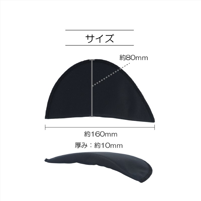 衣類の肩ラインを自然に整える、使いやすい10mm厚のセットインタイプ肩パットです。 衣装制作やリメイク、コスチューム、フォーマルウェアなど、幅広いシーンで活躍します。 ベーシックなブラックカラーは、ダーク系の衣類や舞台衣装に最適です。 素材/成分 ・生地・中綿:ポリエステル100% 規格・サイズ ・規格内容量:1組入 ・本体サイズ:幅160mm × 高さ80mm × 厚み10mm 使用上の注意 ・洗濯の際は、型崩れ防止のため必ず衣類からパットを取り外してください。 ・縫製品のため、サイズに若干の誤差が生じる場合がございます。