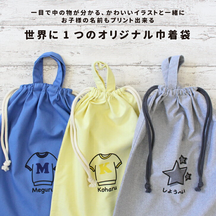 【選べるプリント】プリント巾着袋(大) キッズ ジュニア 子供用 体操服入れ 上履き入れ 巾着バッグ マルチバッグ 手提げカバン 綿 大きい 小学校 小学生 イニシャル 名入れ 名前プリント プレゼント ギフト 贈り物 入園 入学準備 誕生日 記念日