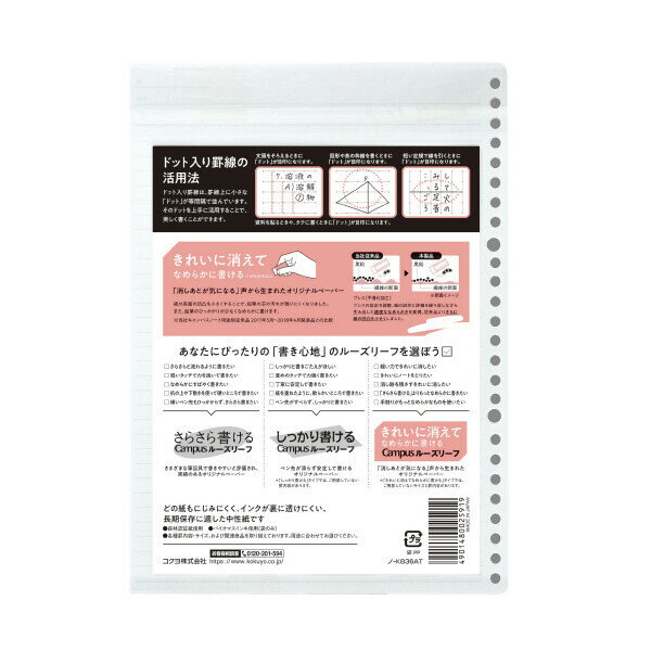 ルーズリーフ コクヨ キャンパス きれいに消えてなめらかに書ける A罫 B5 ノ-K836AT 普通横罫(ドット入り)100枚 業者様歓迎